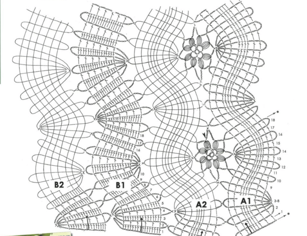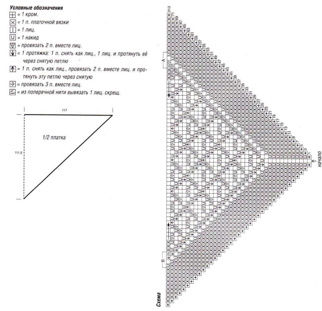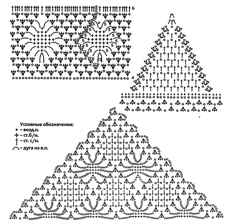 - To properly start knitting a shawl, you should start with a pattern of chains of air loops, and in the center make the same chain 1A. On the left side, dial chains 1B and 2B, and on the opposite side of the center, two identical chains B, but dialed in mirror image.