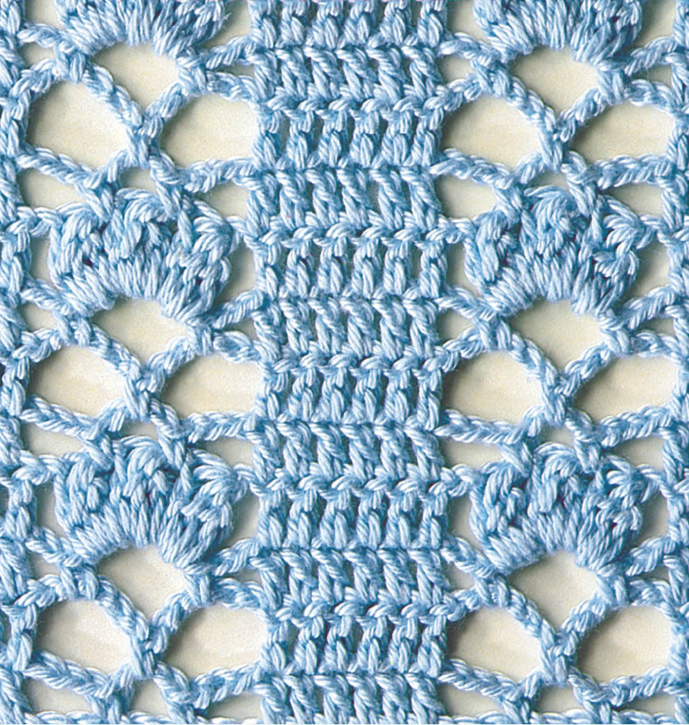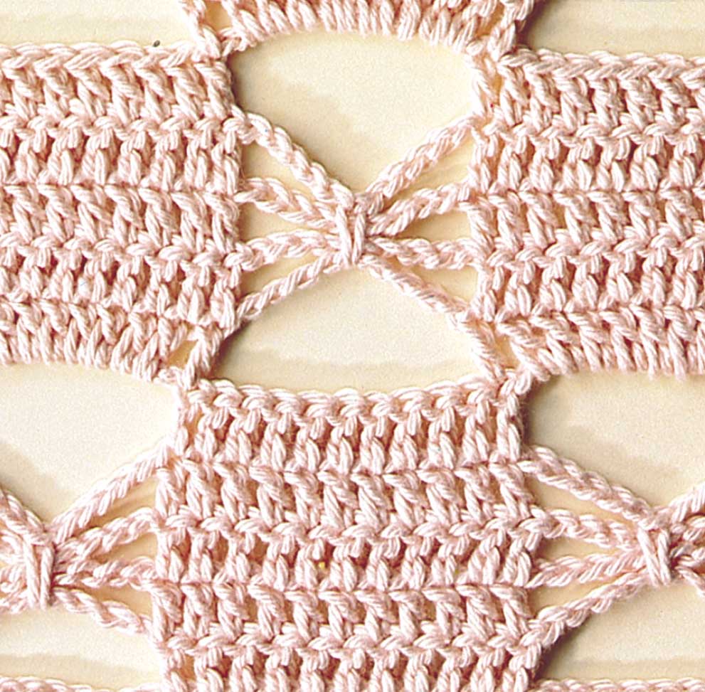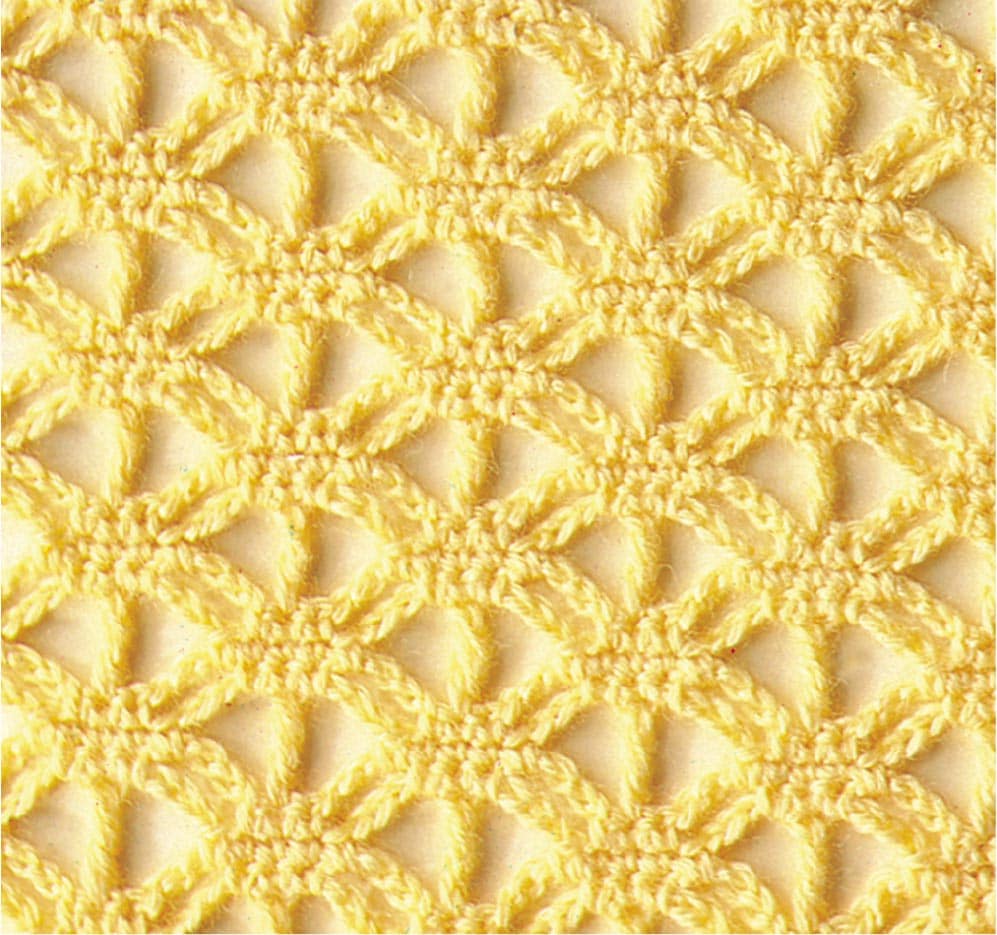 - After we collect another row of arches, then one single crochet, 7 air stitches, 1 single crochet in each 2 stitches. We continue this process to the very end. We finish the work with one row of a single crochet.