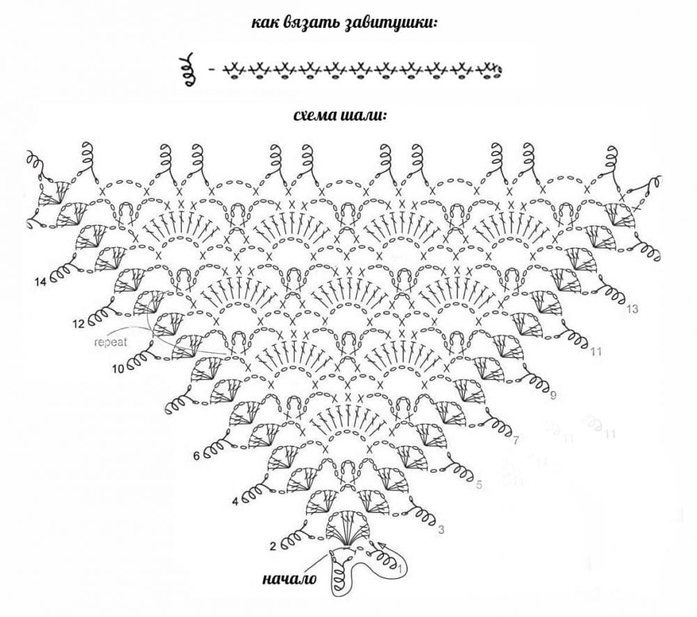 To knit such a shawl you need to change the threads every two rows. If it’s hard for you to knit like that, then just use our instruction diagram and tie a plain version.