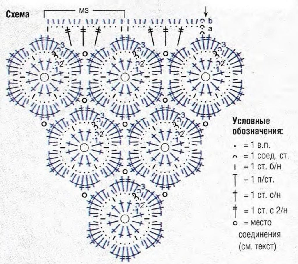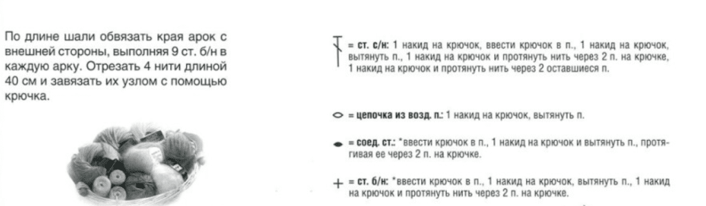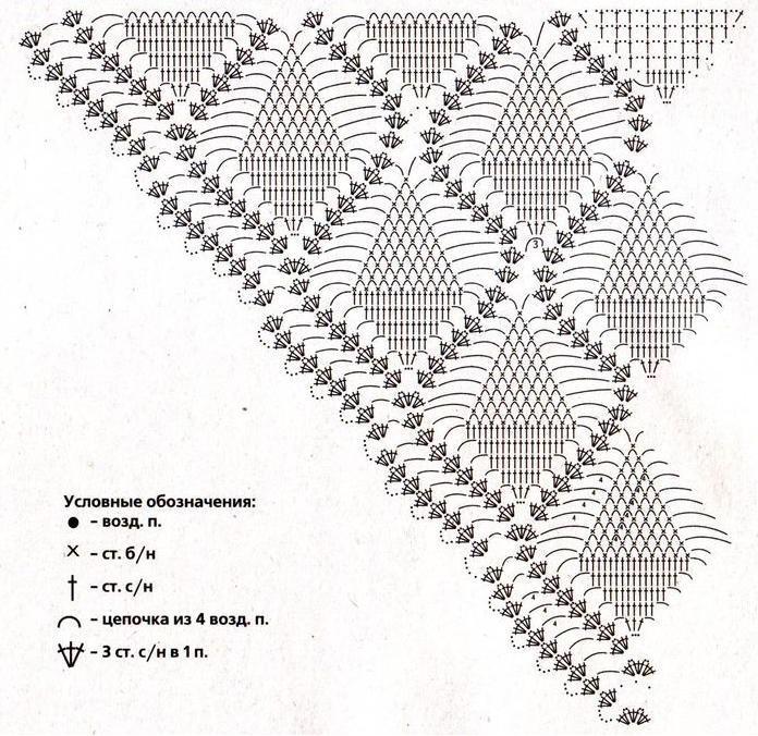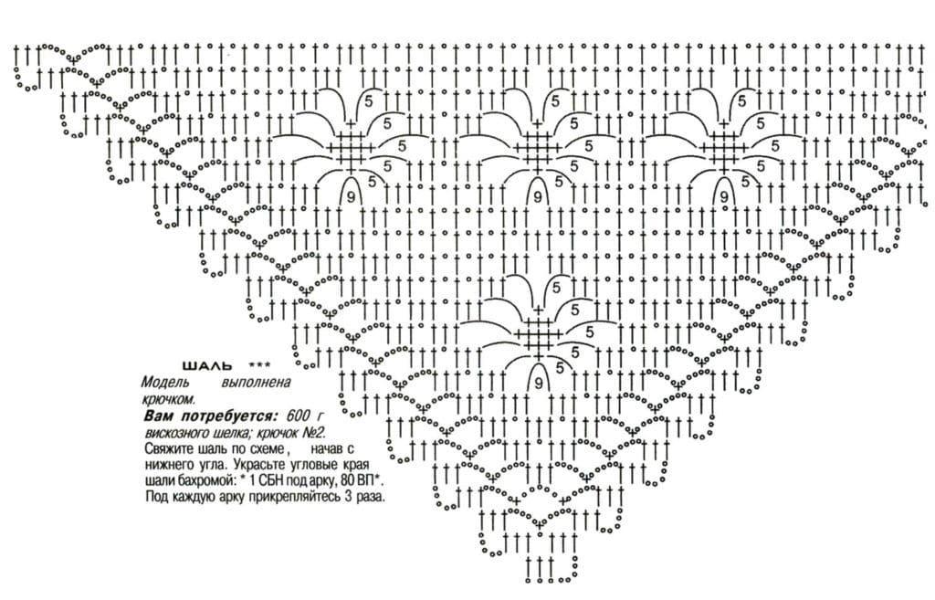To make any patterns in your future shawl, just use our instructions diagrams, which indicate how to properly knit the loops.