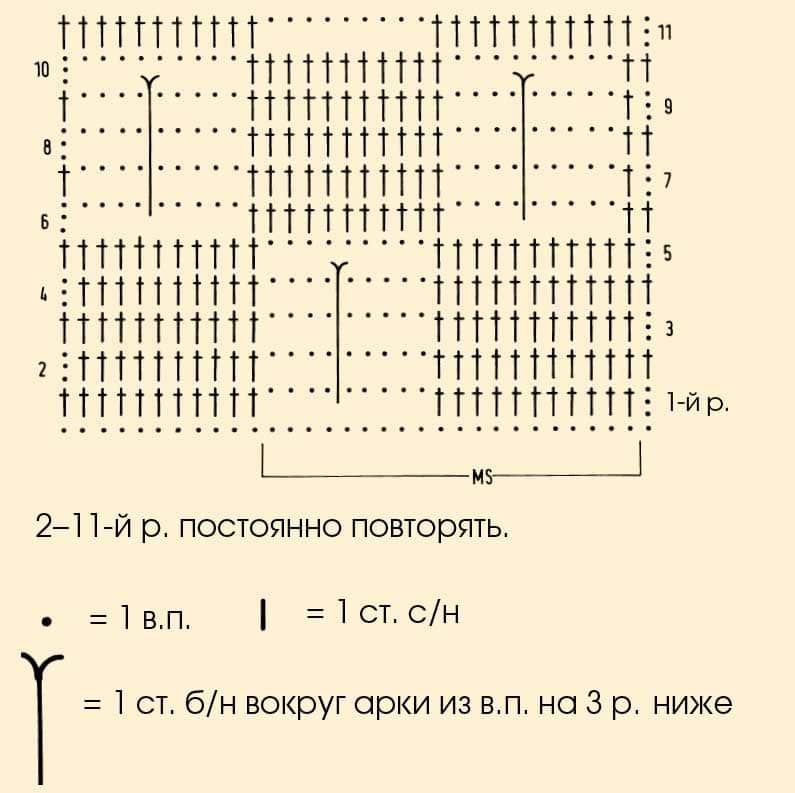 - Once again, we expand the work and do VP (3 pieces - string) in the arch from vp (2 pieces) do s.n. (3 pieces), and after vp (2 pieces), then S.N. (3 pieces), after vp (3 pieces), then into the arch from vp (3 pieces), do with. (1 piece), then into the arch from vp (5 pieces), do s.n. (9 pieces), after to the arch from vp (3 pieces) do with. (1 piece), and then into the arch from vp (5 pieces), do s.n. (9 pieces), after to the arch from vp (3 pieces) do with. (1 piece), and then VP (3 pieces), after to the arch from vp (2 pieces) do s.n. (3 pieces), after vp (2 pieces), then S.N. (3 pieces).