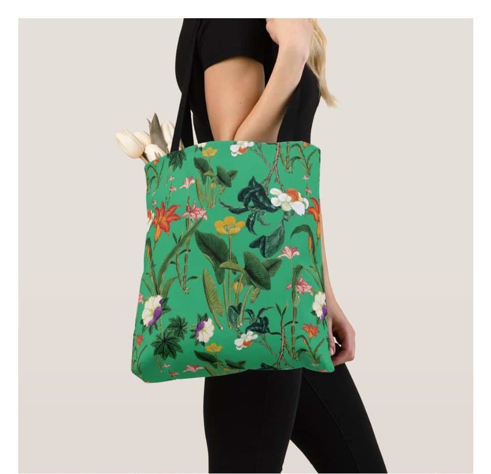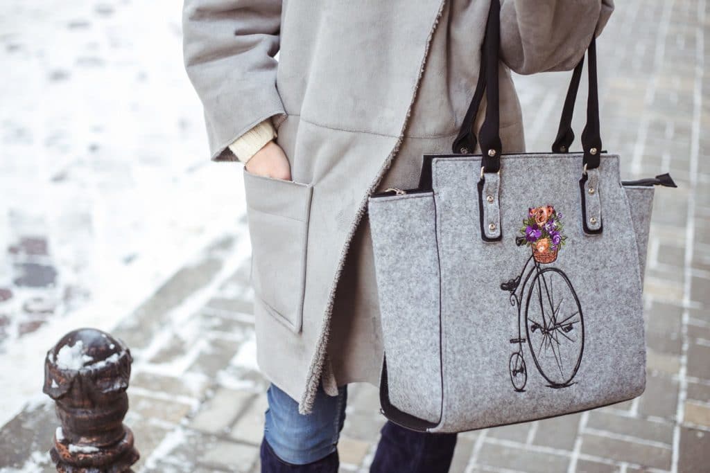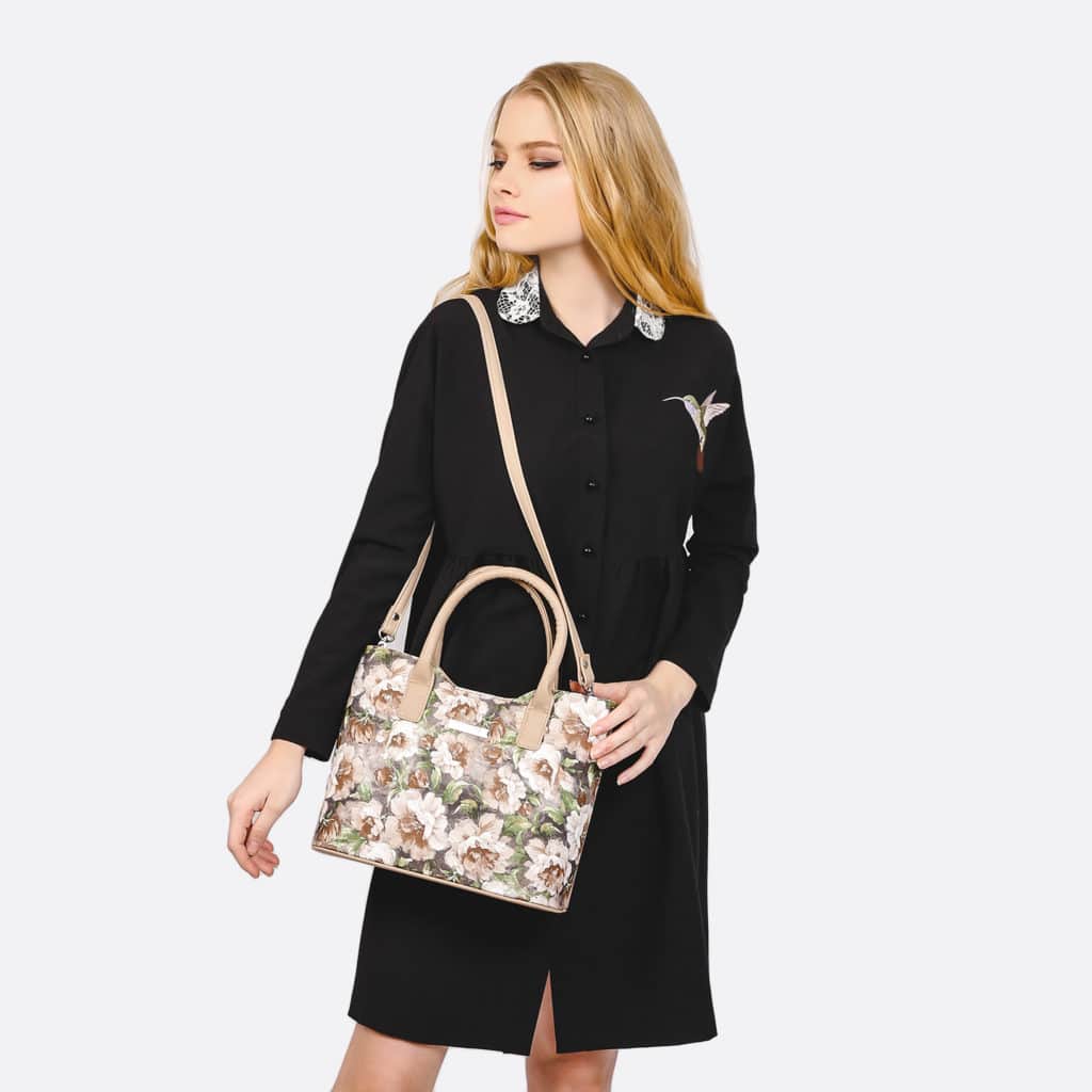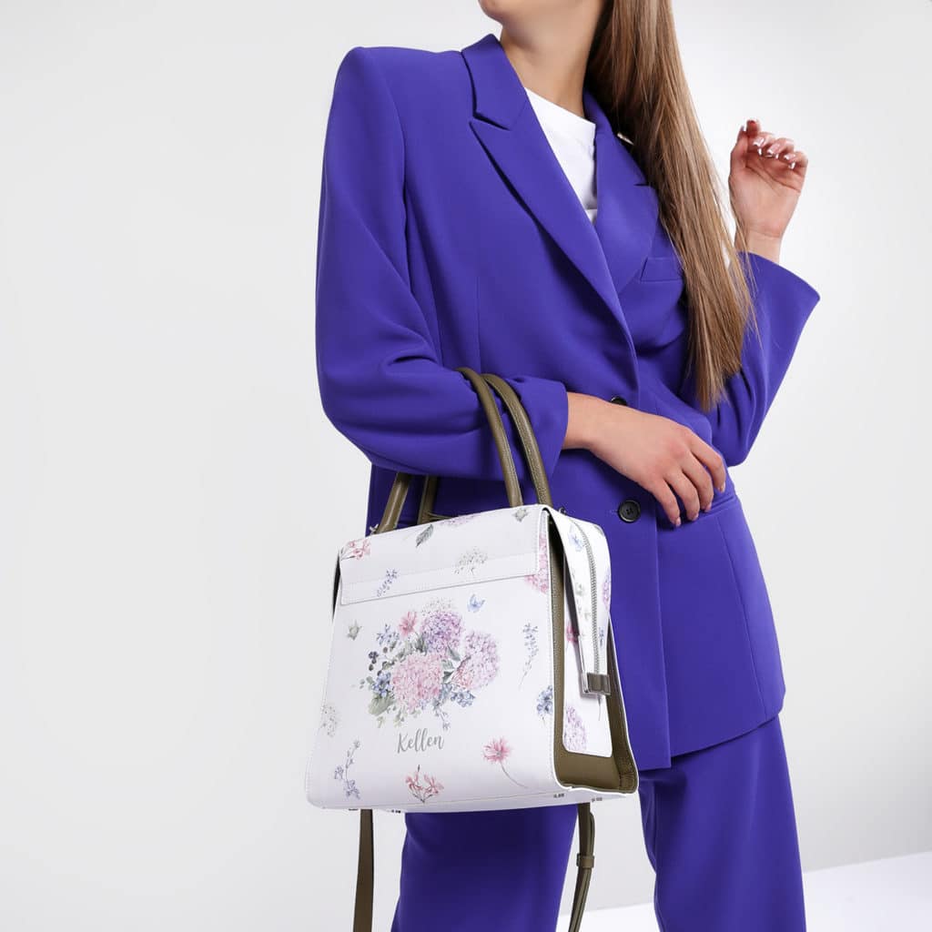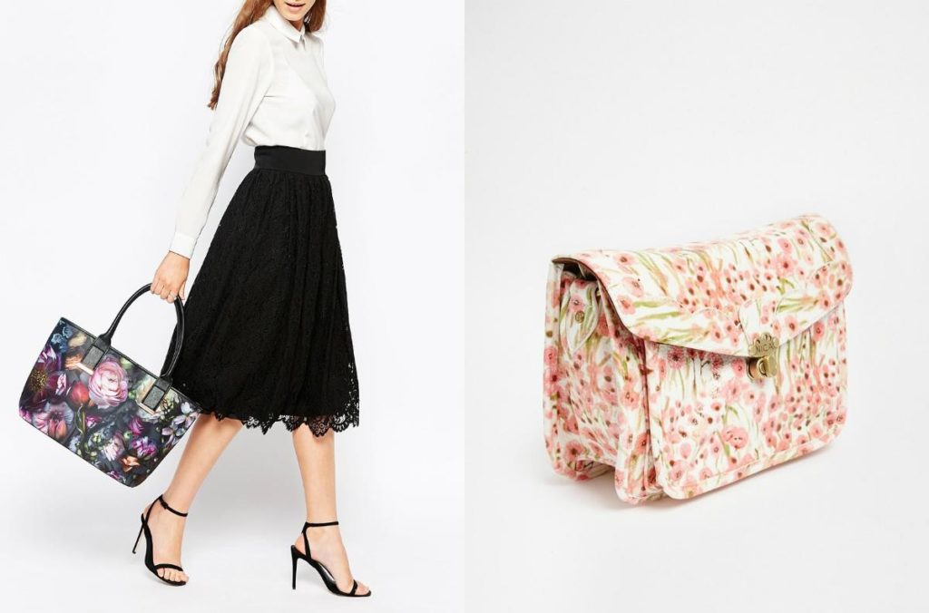 A handbag with a print perfectly complements your romantic and vibrant look.
