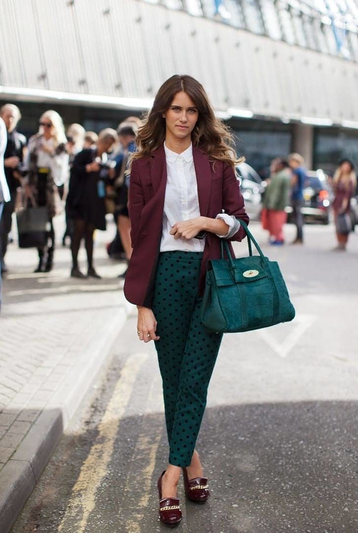 And with neutral shades such as black as well as white, a green bag will bring brightness to the image.
