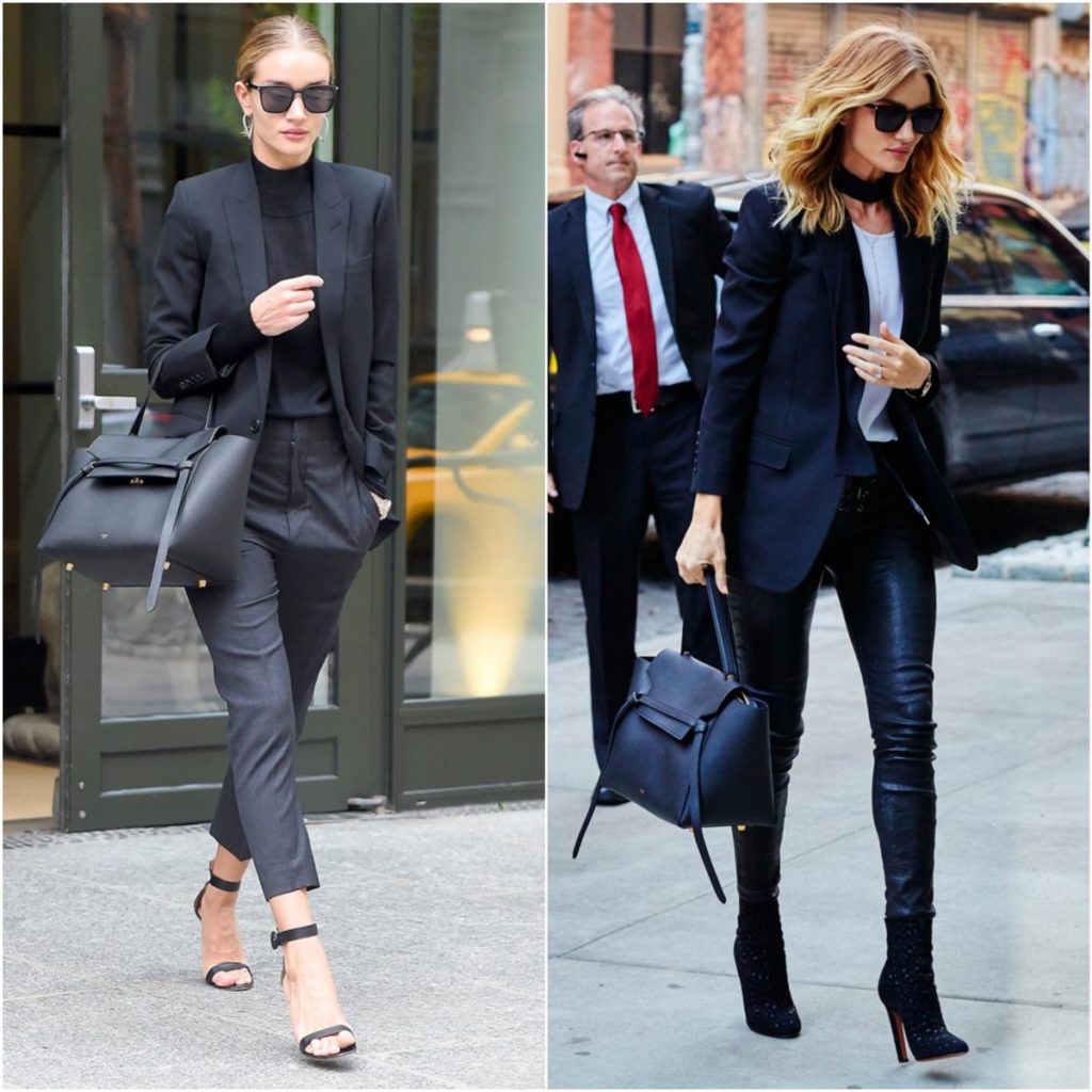 In a business look, black medium-sized bags, as well as different models, look appropriate. They blend perfectly with the strict style of clothing.