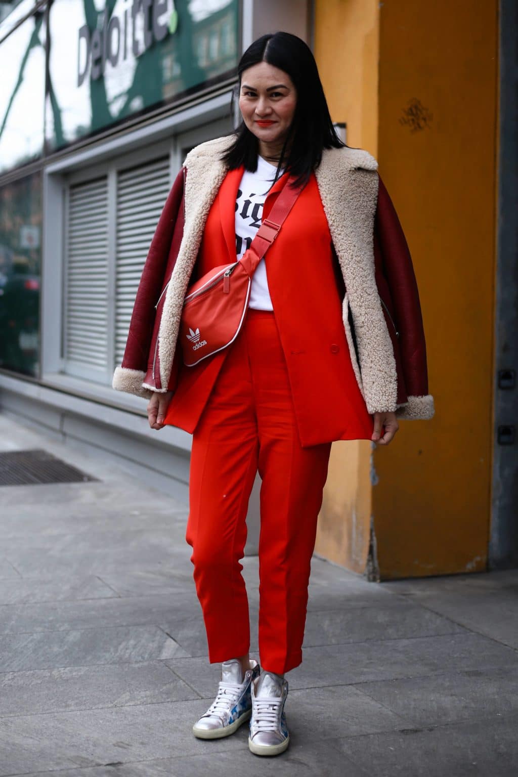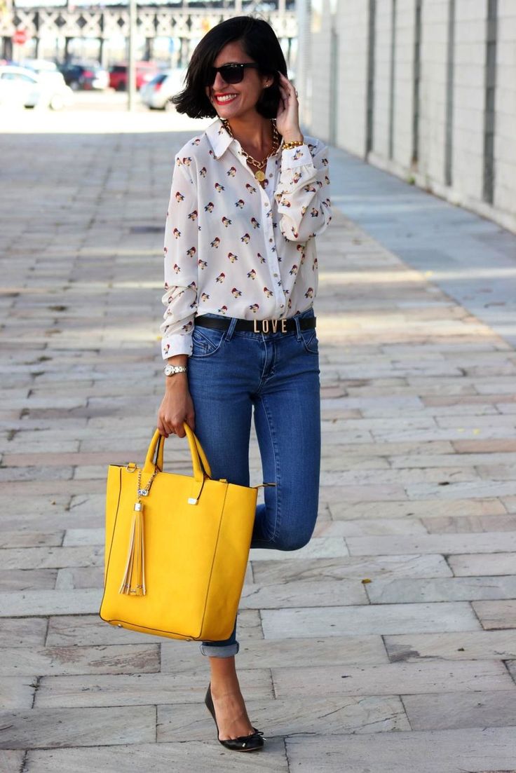 And go well with the casual style of a shoulder bag. Choose bright colors of your clothes so that your outfit does not seem boring.