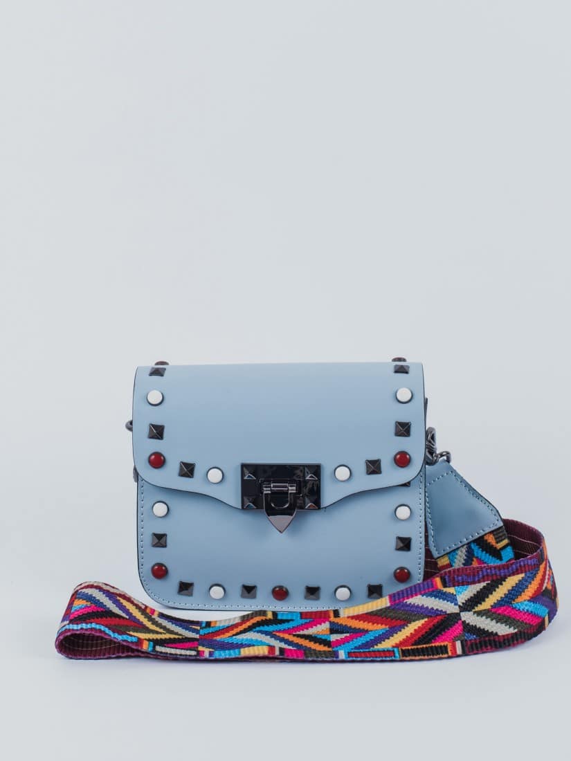 A blue bag will be an interesting addition to your look.