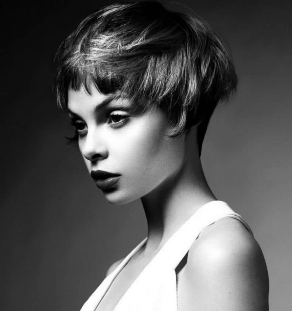 A short bean made in the classic version forms a strict restraint and at the same time romance. A short, milled bang will perfectly complete such an interesting image.