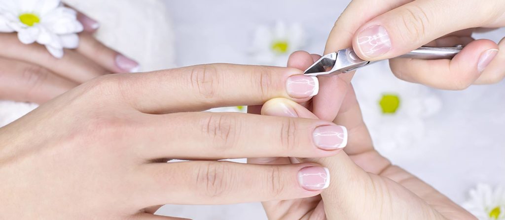 Then you need to apply an acid-containing emulsion to the cuticle, which will soften the cuticle, and you can push it with an orange stick. What you can’t remove, you can cut with the help of nippers (European and trimmed type of manicure)