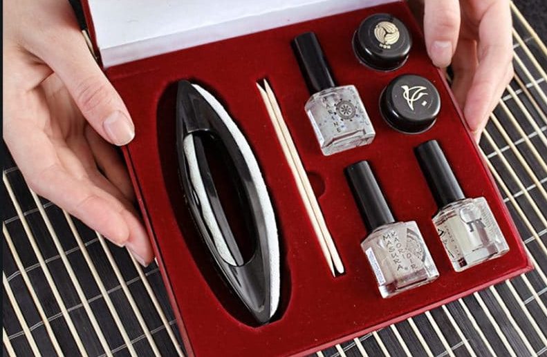 Let's say you have a gentle cuticle to which you should not use hardware manicure. In this case, the master uses standard sets of edged manicure or removes the cuticle using the Japanese manicure technique. In this case, he uses cucumber extract to soften, and then removes it with boxwood sticks - Tachiban.