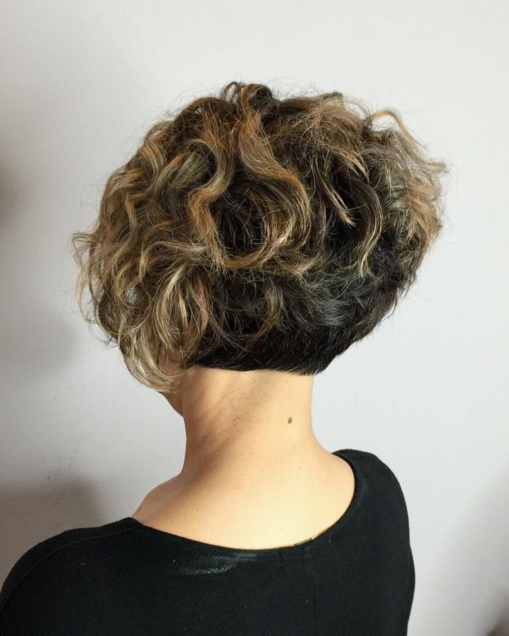 A more modified bob, known to us under the name bob bob. This haircut is perfect for curly and curly hair. Due to the shortened strands on the back of the head, the entire bulk of the hair will become even larger.