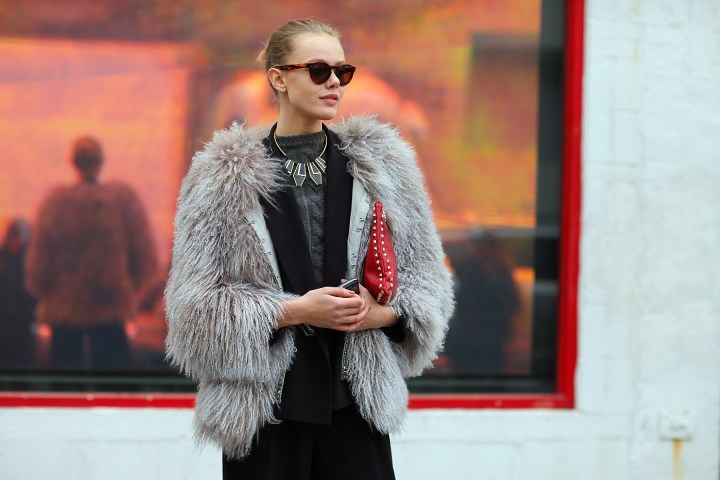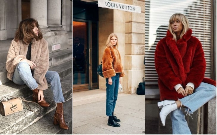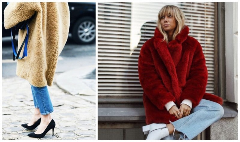With a faux short-sleeve fur coat, jeans, leggings, skinny skirts and knitted dresses will look good.
