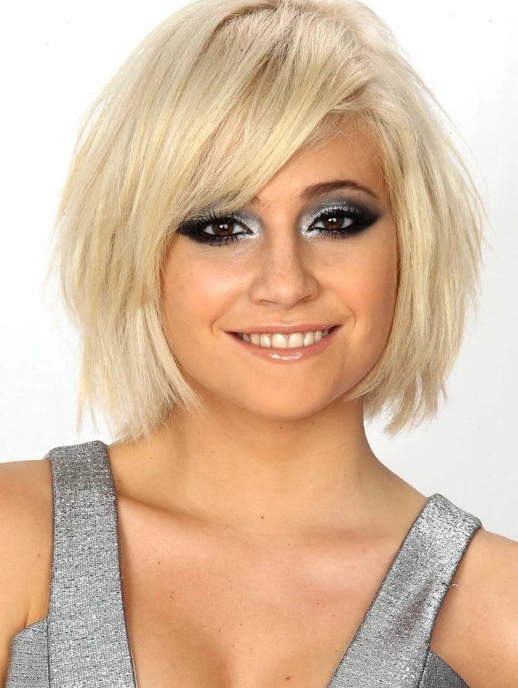 Chubby girls can not choose haircuts having a dense, thick bang, and you can not make tight curls. Since such curls will make the face even larger, which is not good.