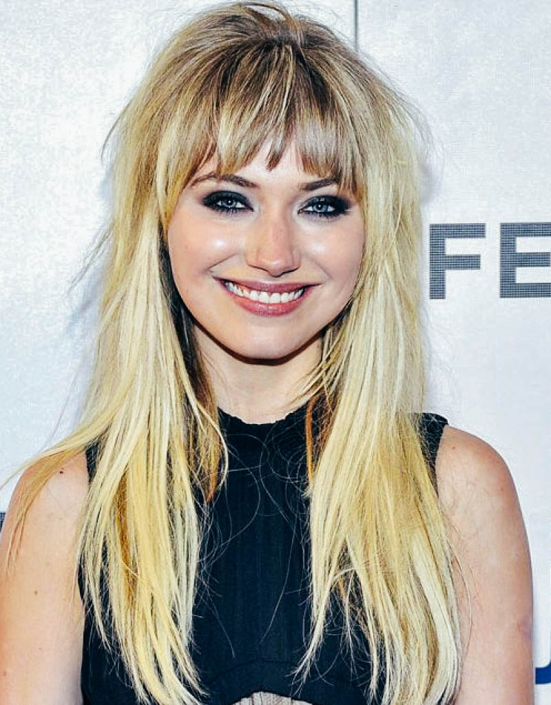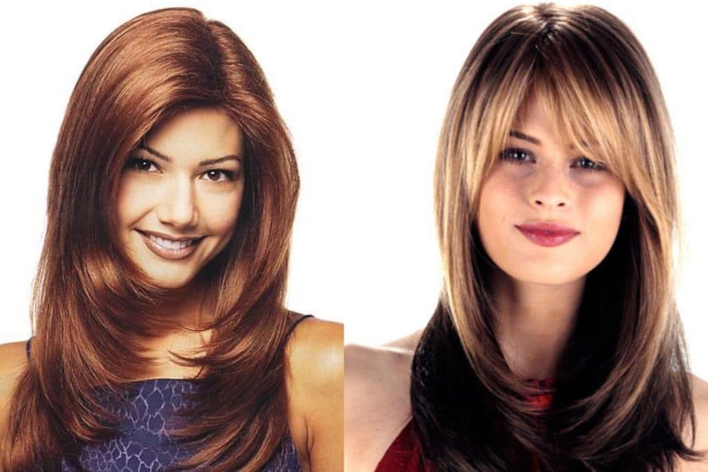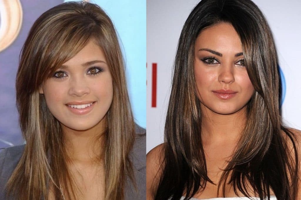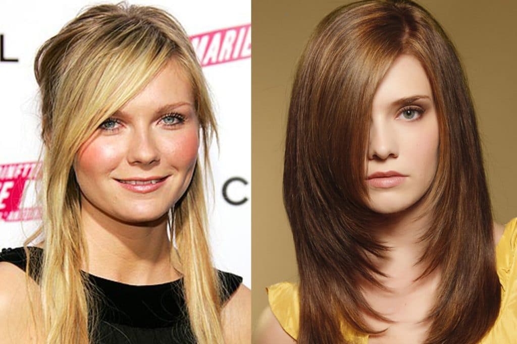 The same goes for bangs. Not any heavy, thick options, but only lightweight, oblique, torn, graded and milled models. Thanks to them, your forehead is partially covered, and your face visually stretches.