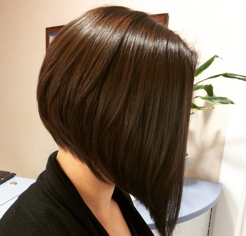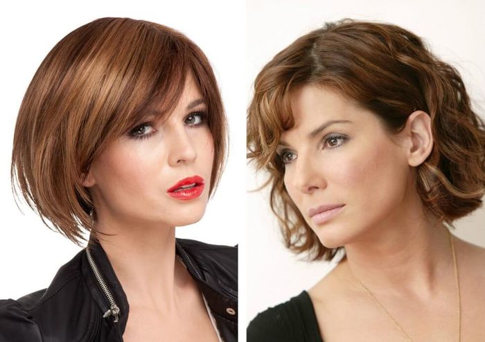 Bob haircut has some similarities with bob haircuts, but differs in other performance techniques. Thanks to the even cuts of the strands in the caret cut, the line of the cheekbones still stands out, but not so massive. But the chin becomes visually smaller, making the face a bit like triangle type.