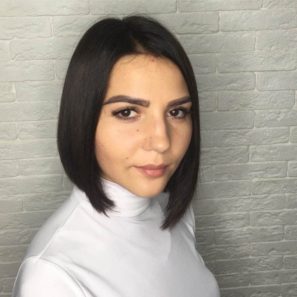 Bob haircut very similar to beanbut performed differently. Its soft structure will help smooth overly sharp chin, as well as give a little more width to your cheekbones.