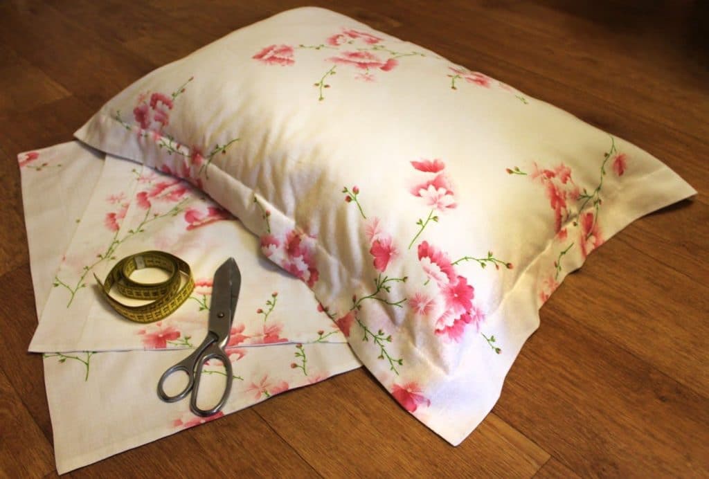 After that, we fold the fabric with the face to each other, not forgetting that one edge is 27 cm longer. This is the lapel of our pillowcase. When sewing the lapel, the fabric folds with the wrong side inward to the edge from which we retreated and sew. We turn the product, straighten the edges and carefully iron. All your pillowcase is ready!