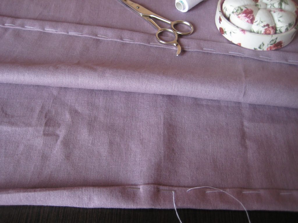 This is a rather crucial stage of our process, since the appearance of the finished product depends on the quality of the seams. It is better to give preference to a hem in a hem with a closed cut. Its advantage is in durability, accuracy and will not allow the edges to crumble.