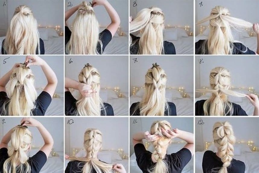 - We repeat the manipulations until the end of the braid, fix it with an elastic band.