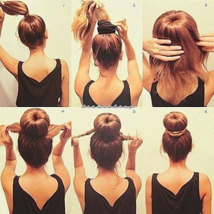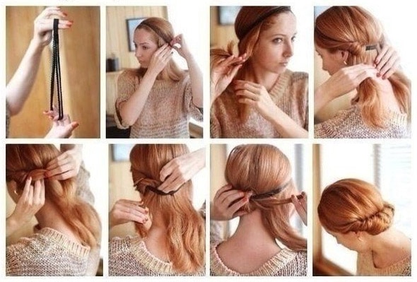 - Gather the hair in a high ponytail, and then put on a special gum bagel. This gum has a wide and soft shape.