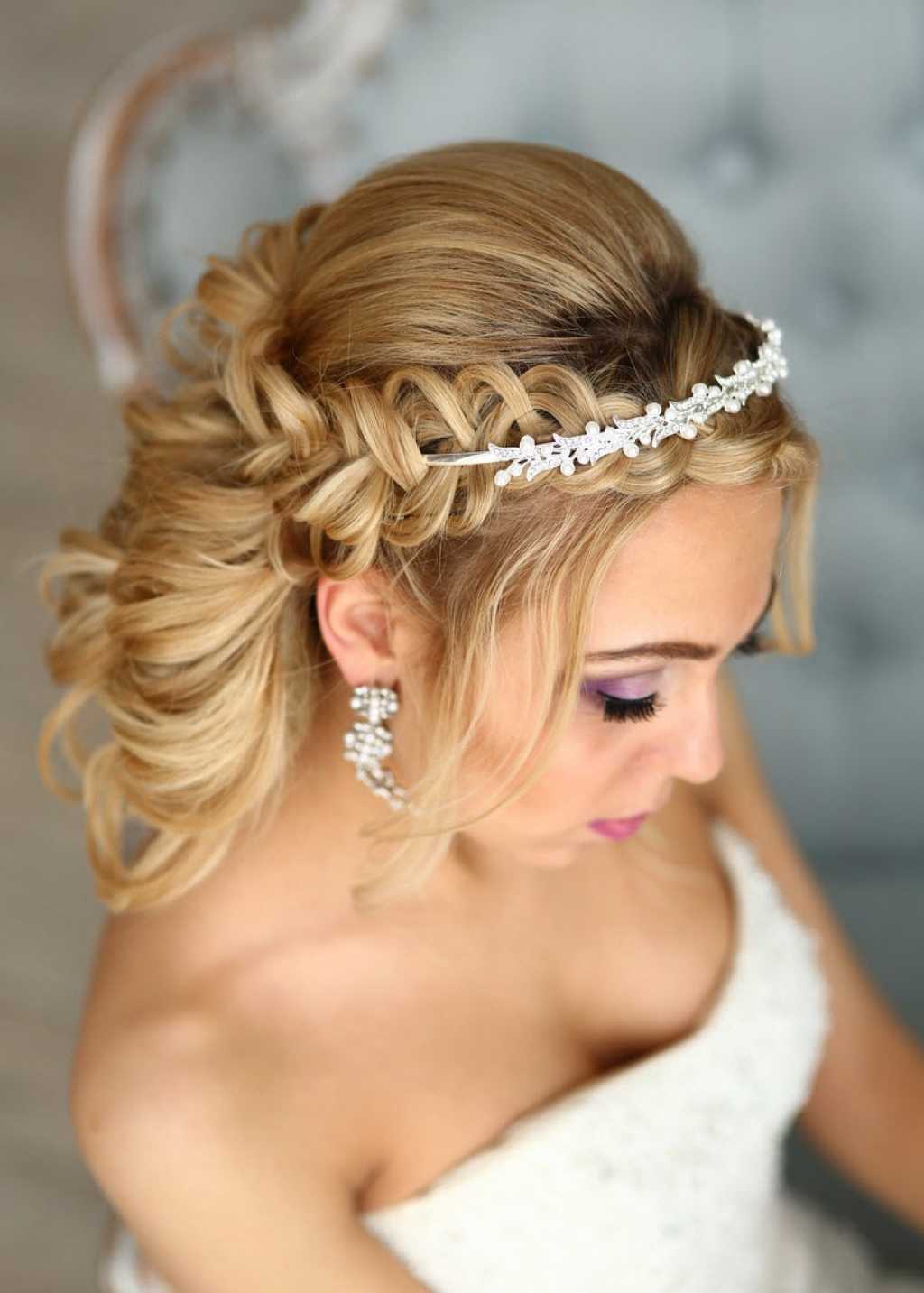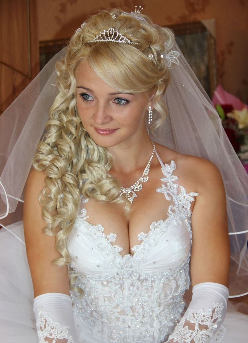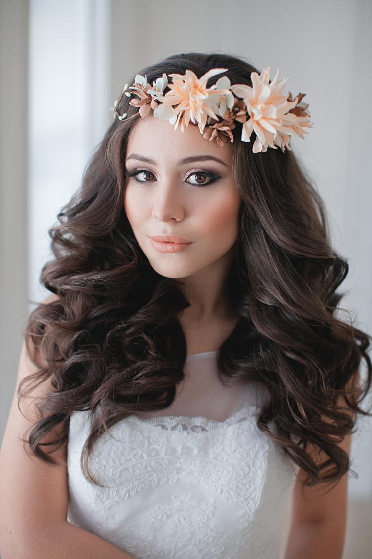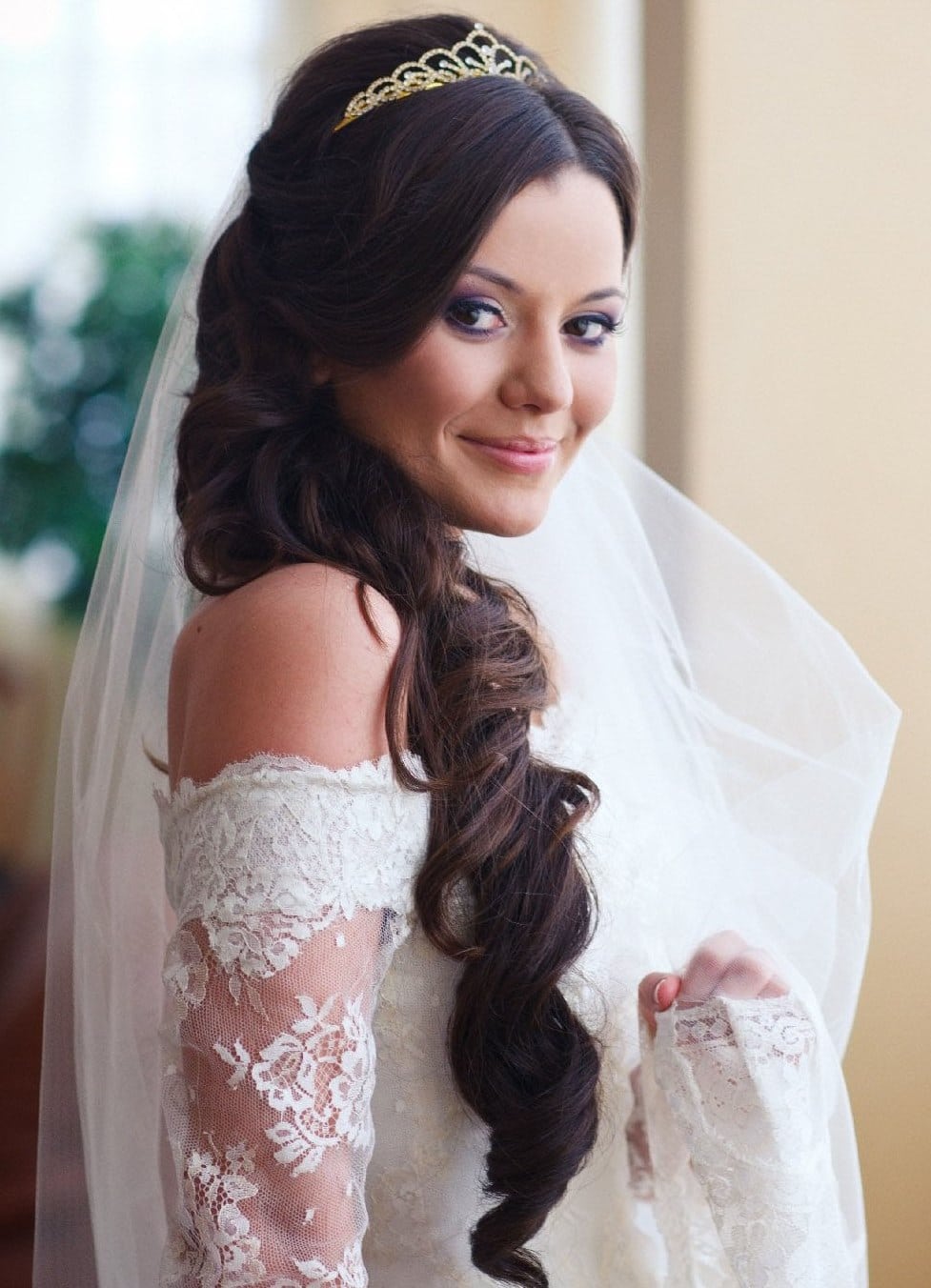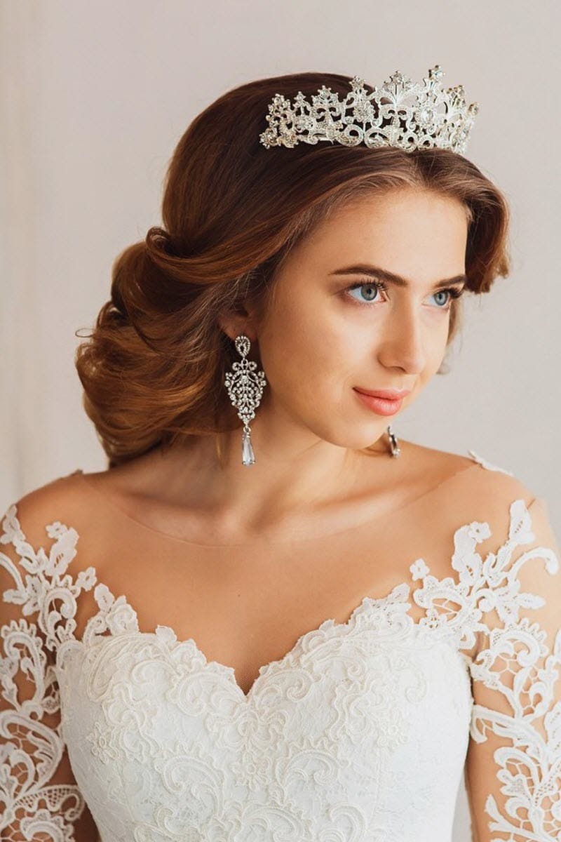 Recently, it has become increasingly popular to use tiaras or crowns in wedding hairstyles. If you use a diadem, then there should be no more jewelry on your hair. Because the image can be oversaturated.