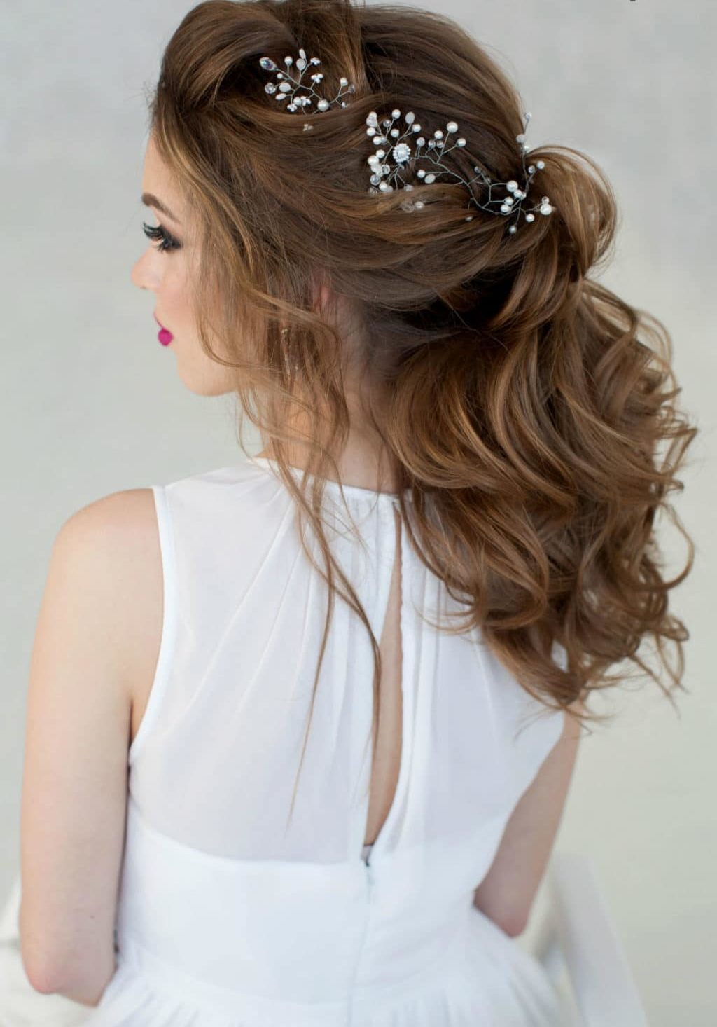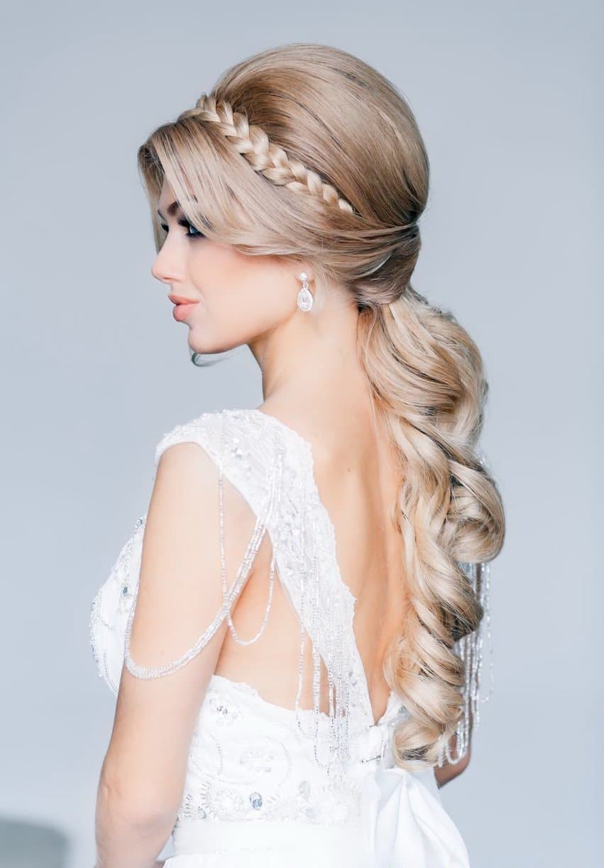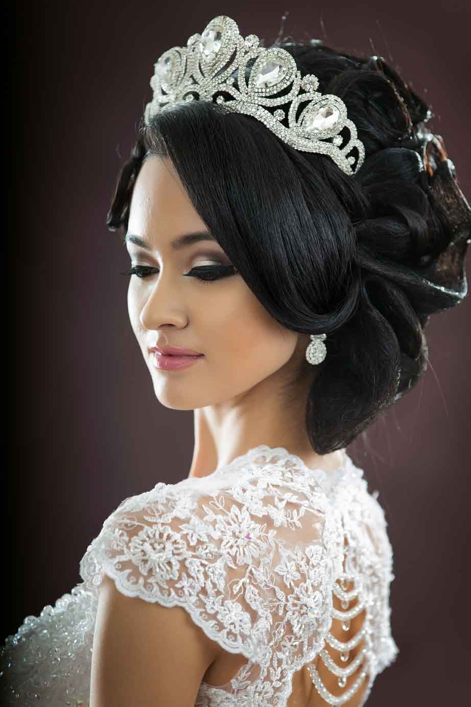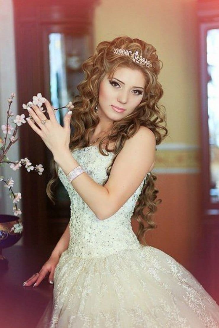 Recently, it has become increasingly popular to use tiaras or crowns in wedding hairstyles. If you use a diadem, then there should be no more jewelry on your hair. Because the image can be oversaturated.