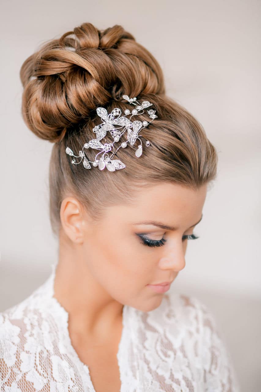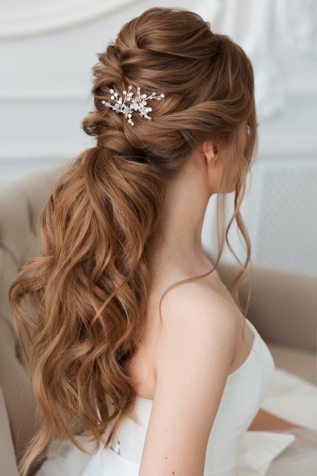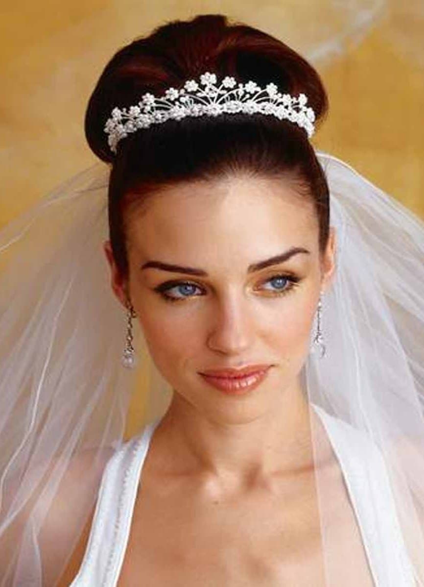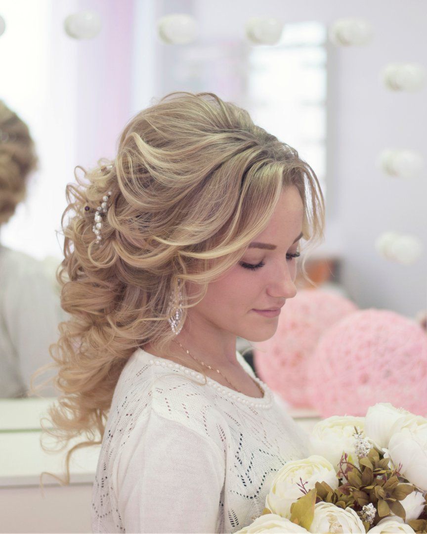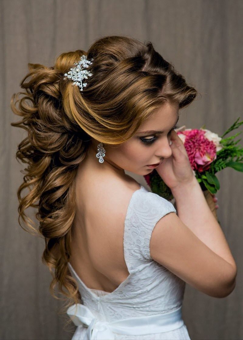 Recently, it has become increasingly popular to use tiaras or crowns in wedding hairstyles. If you use a diadem, then there should be no more jewelry on your hair. Because the image can be oversaturated.