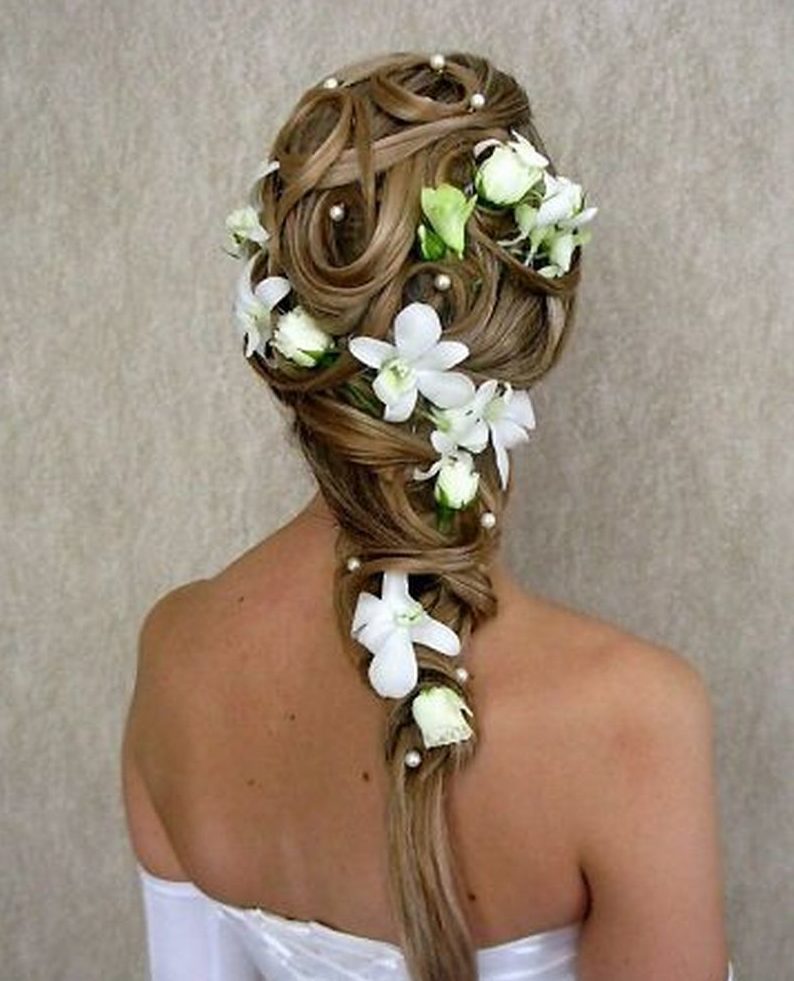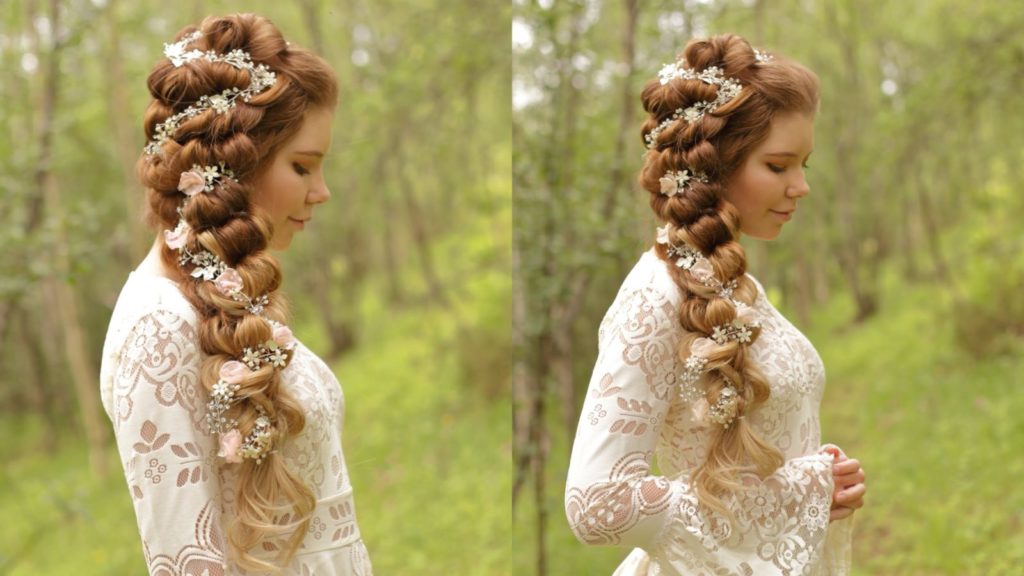 By far the most feminine and classic option are hairstyles with the addition of flowers. They can be woven into a braid or tail of hair, which will create a magical impression as if they grow there.