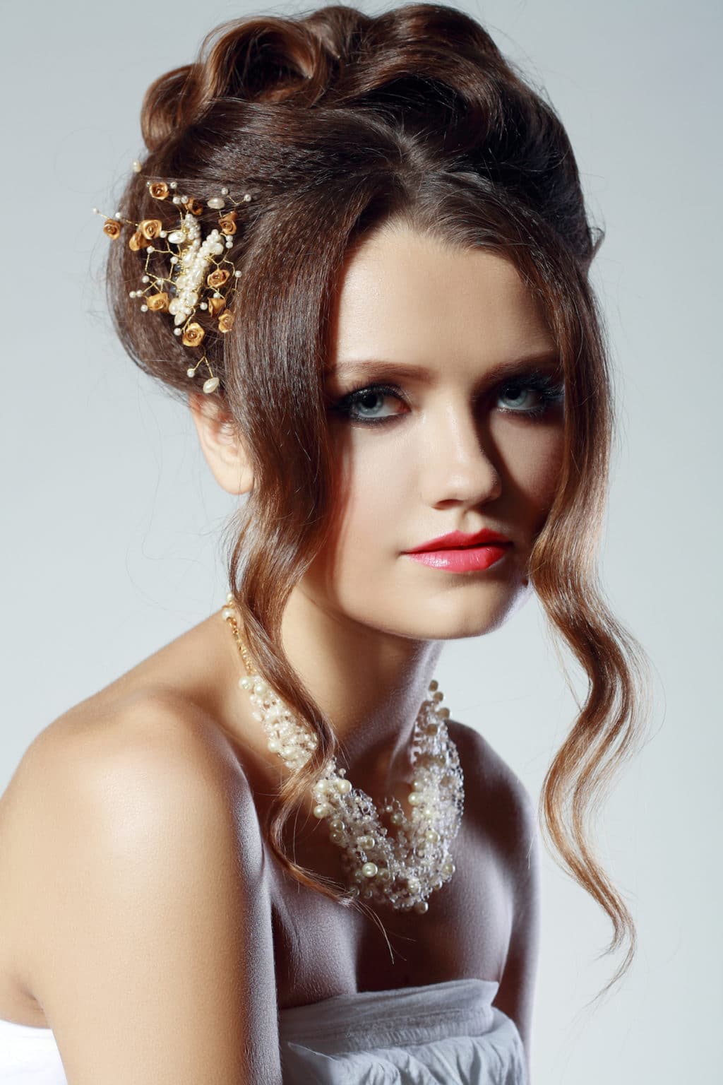 To the dissolved options, one can include hairstyles with Hollywood curls, as well as voluminous spikelet. Depending on your preferences, such a hairstyle is decorated either with massive jewelry or smaller ones. An ideal option would be to use a hairpin-bezel with rhinestones or decorative stones.