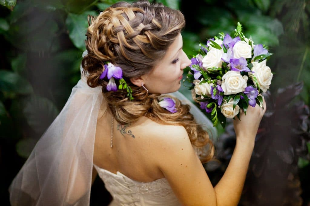 A romantic bundle with a pigtail can perfectly decorate a floral decor.