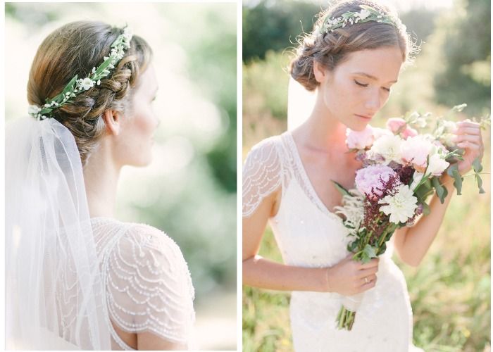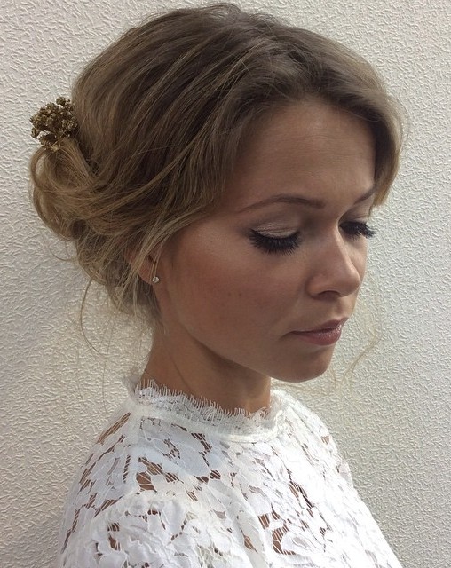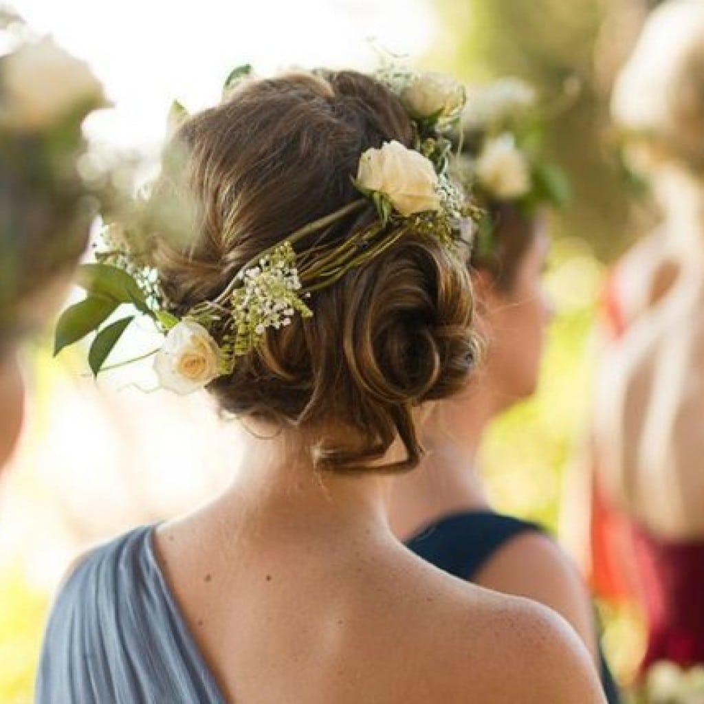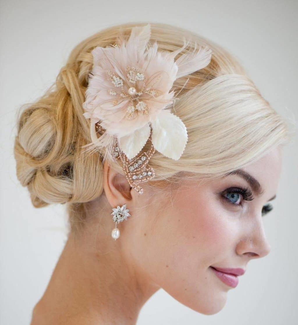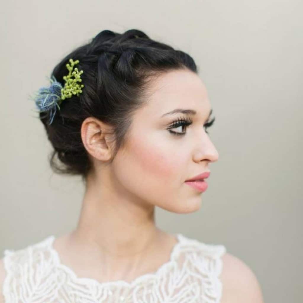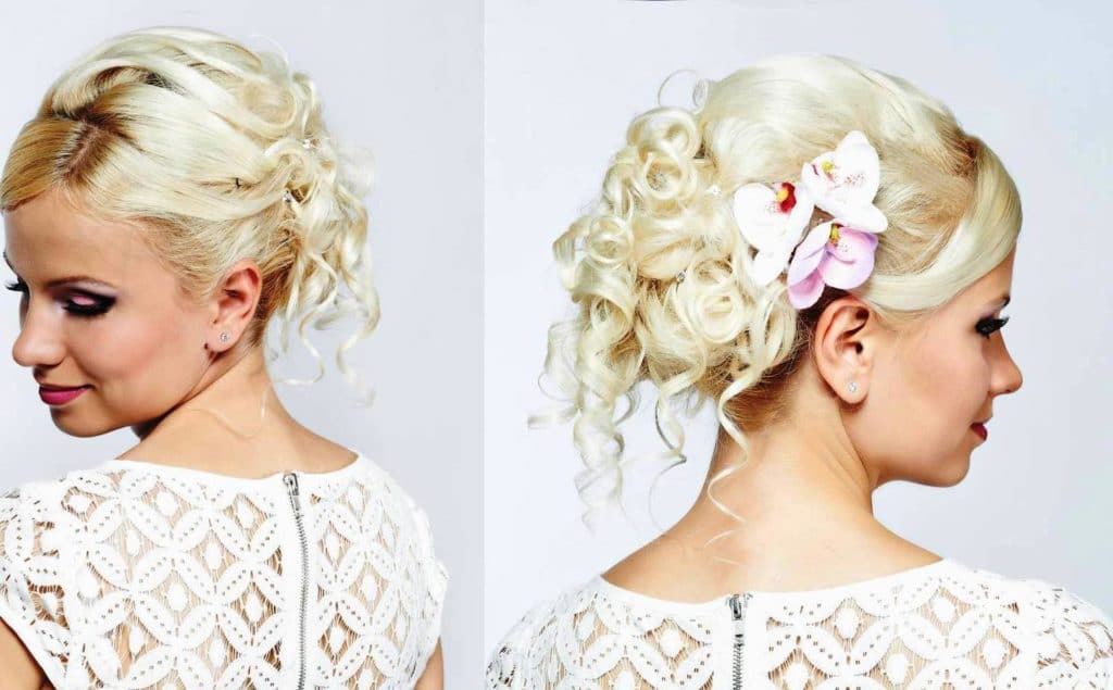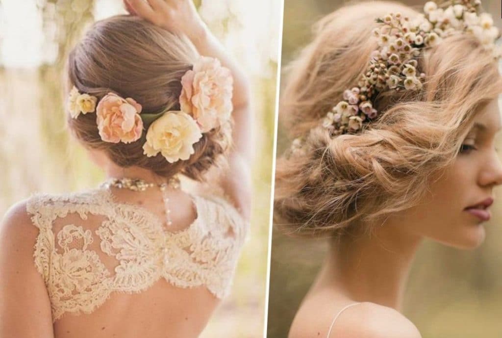 Hairstyles decorated with flowers are very feminine. Indeed, if the bride chooses such a decoration on her wedding day, it always symbolizes a connection with nature, which has a beneficial effect on the joint future with her husband.