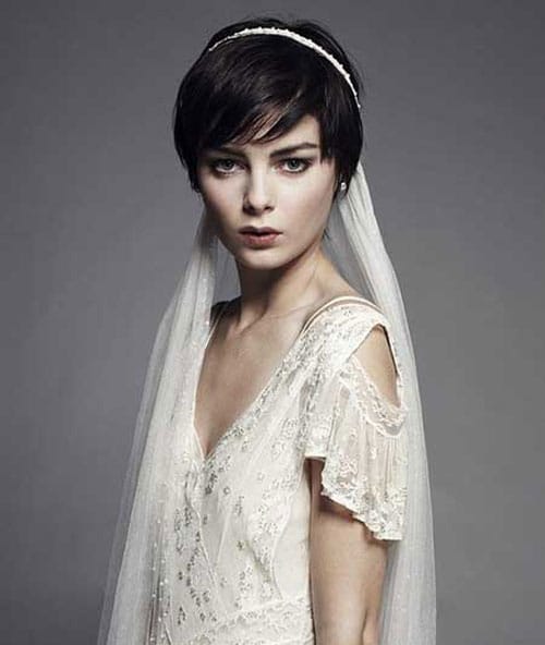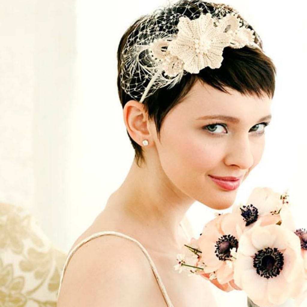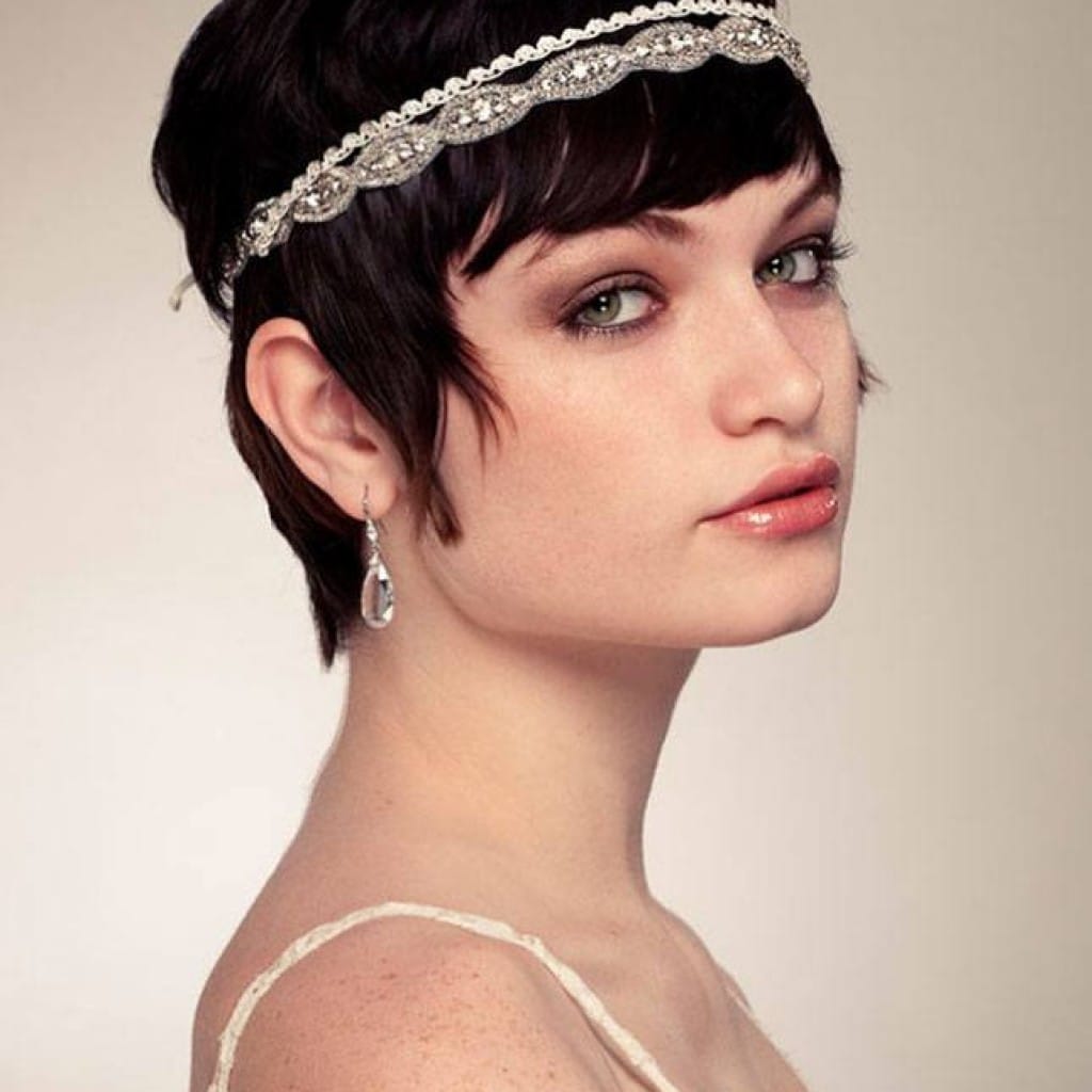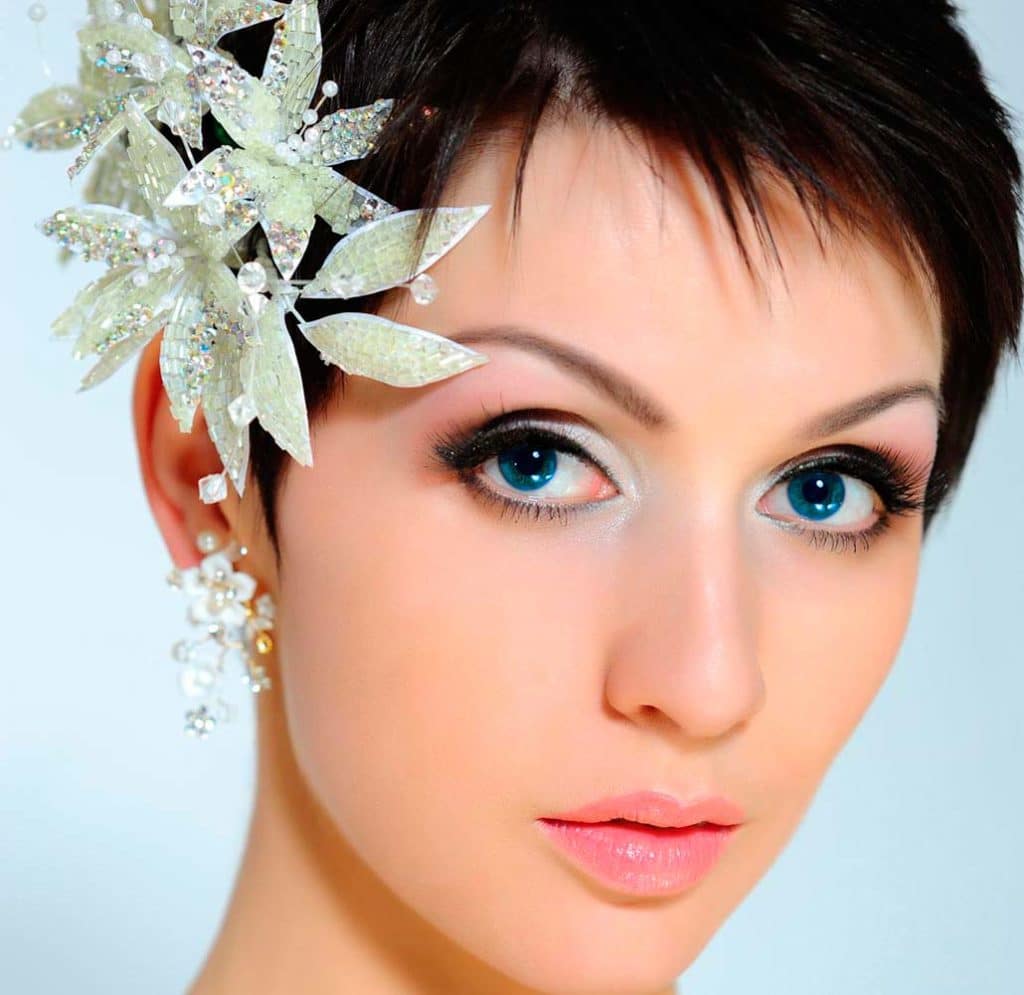 For owners of very short hair, a pixie haircut to create a hairstyle is ideal. Such a hairstyle can be decorated with a wide or narrow ribbon or decorative feathers.