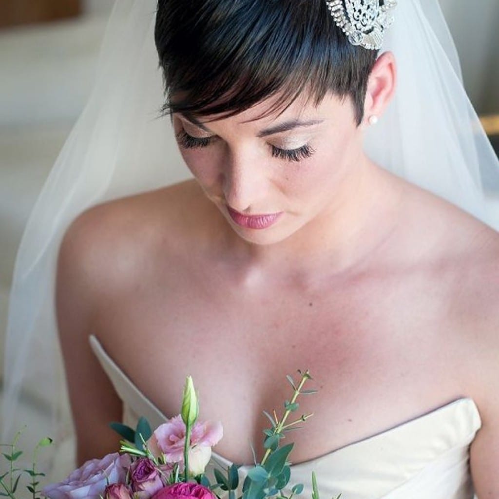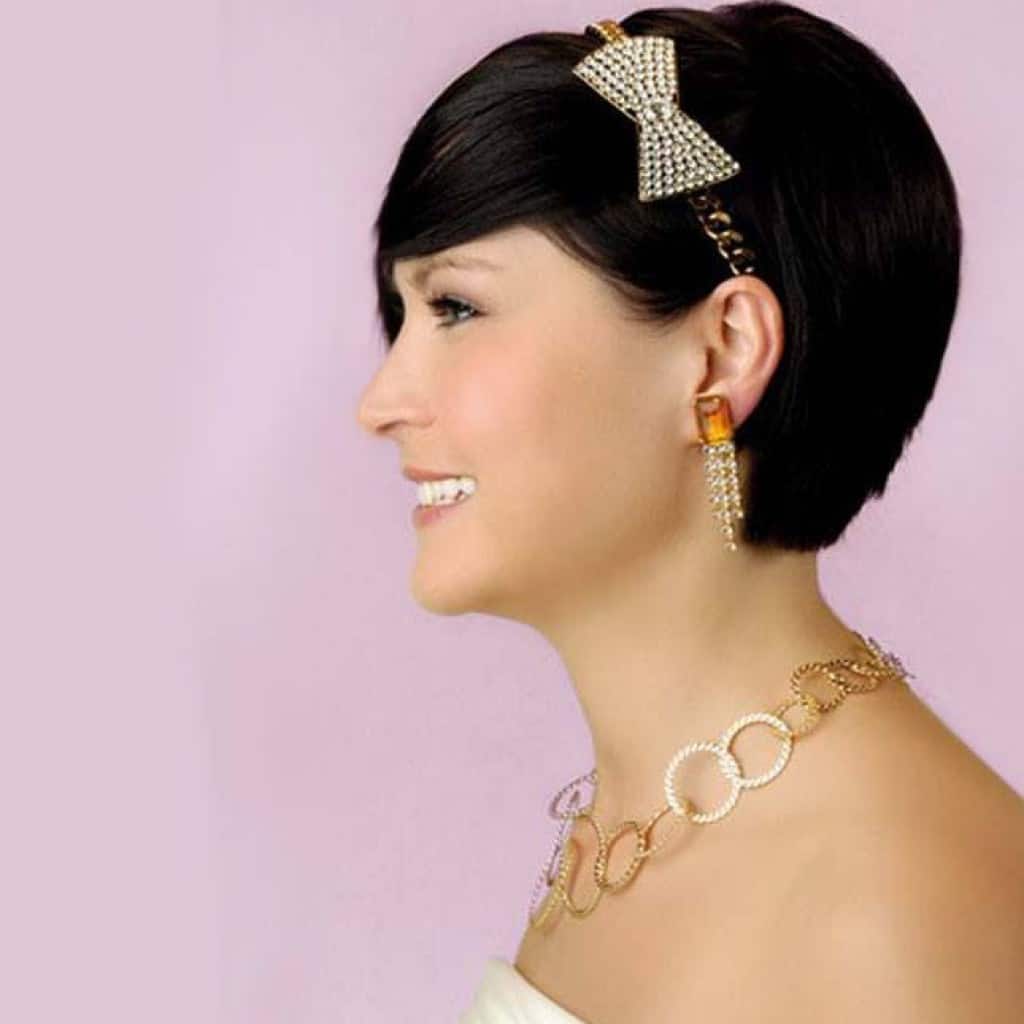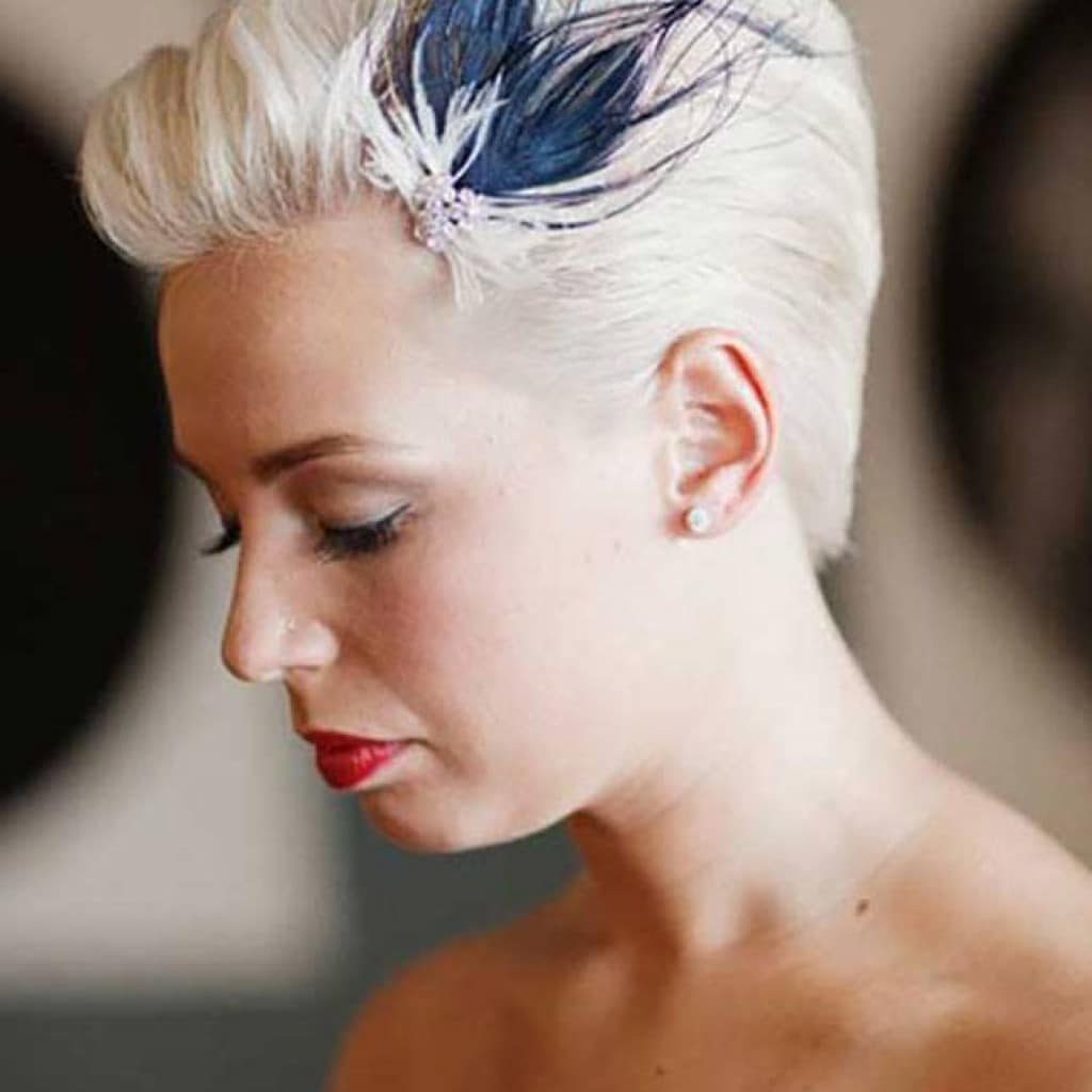 For owners of very short hair, a pixie haircut to create a hairstyle is ideal. Such a hairstyle can be decorated with a wide or narrow ribbon or decorative feathers.