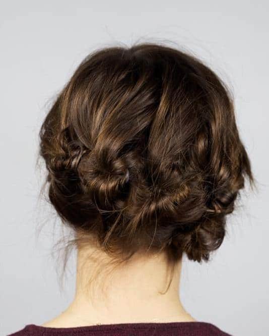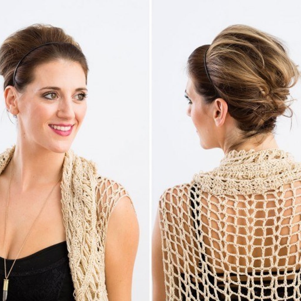 Greek style hairstyle, perfect for girls with short hair. For this, a hoop is put on the head, and loose hair is twisted a little and threaded through it so that the ends are not visible.