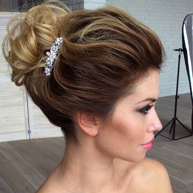 Bunches can give short hair visually more volume than it actually is. Such bundles have a bulky patch in the area of the parietal zone, and the tail itself is slightly twisted and collected in a bundle.