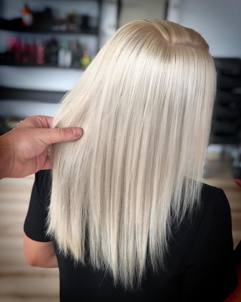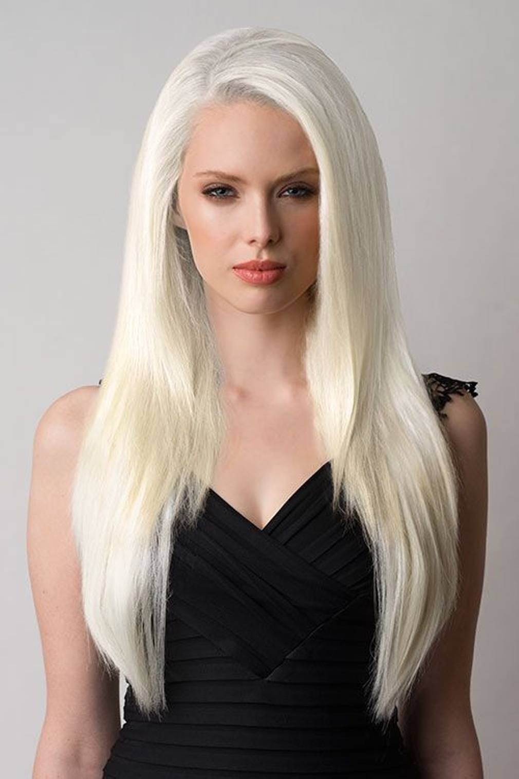 A platinum blonde borders on almost white hair. It is the lightest shade among all shades of blond.