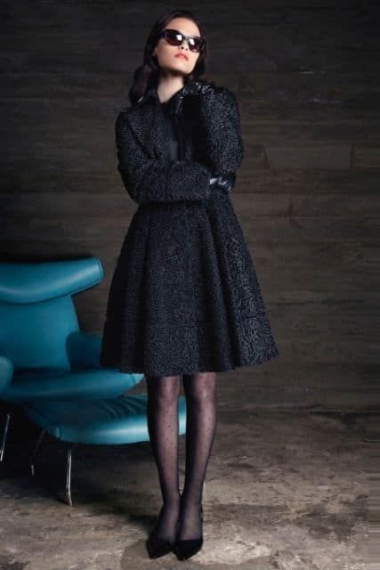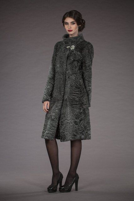 Please note that astrakhan fur coats do not make the image heavier, therefore you can even wear a flared skirt with them.