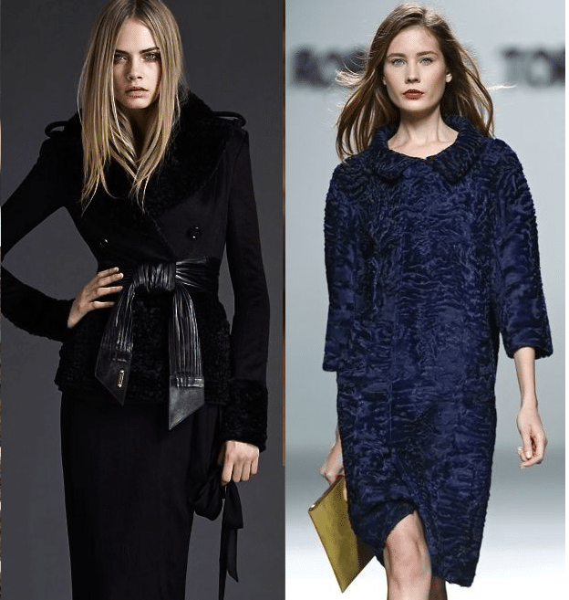 Another type of astrakhan fur coats - fur coats from astrakhan fur, they are made from lambs embryos.Such fur coats are popular for their unusual colors, but they are not as warm as astrakhan fur and are more suitable for off-season or warm winter.