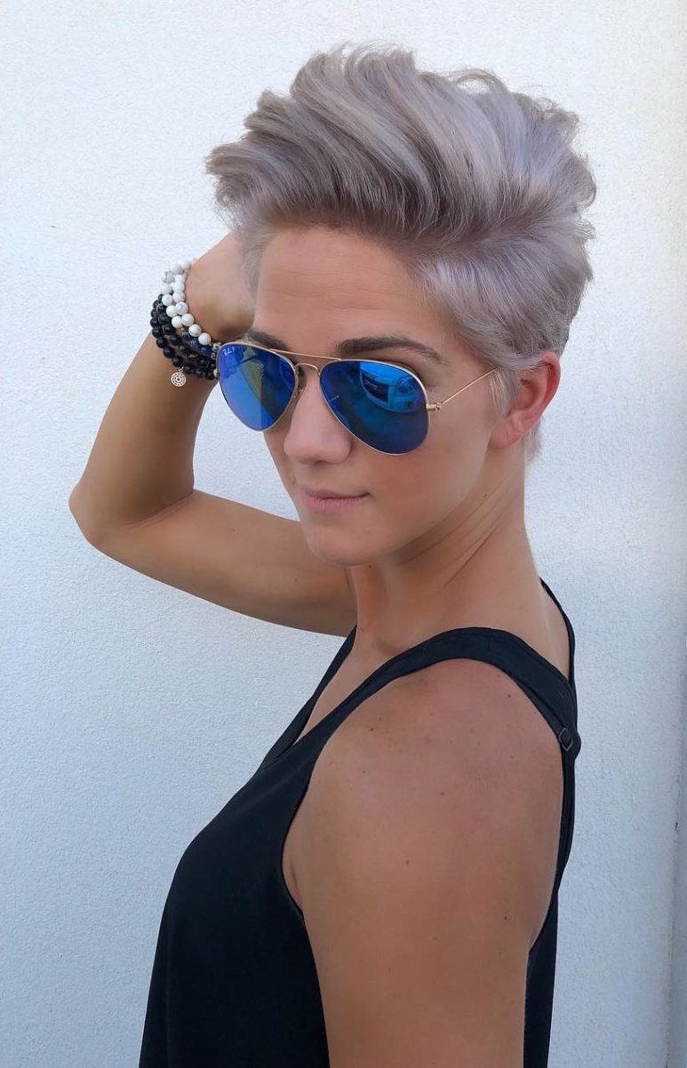Often, a pixie haircut can be seen with shaved temples or the back of the head, which adds an image of sharp pepper.