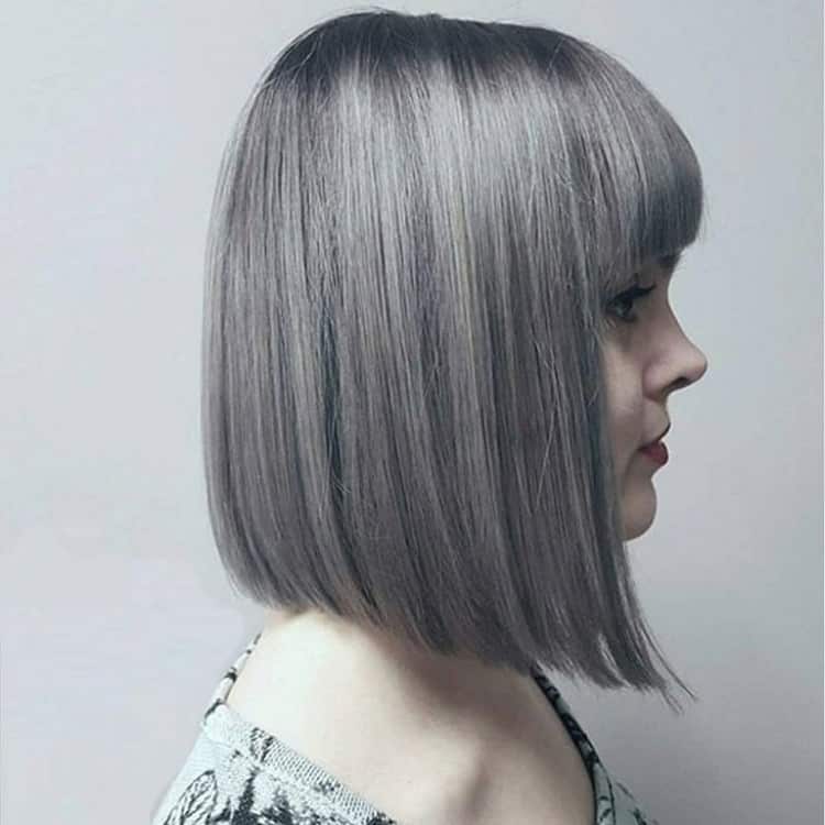 Asymmetrical is perfect for young girls, elongated, as well as classic square with bangs in ashen color.
