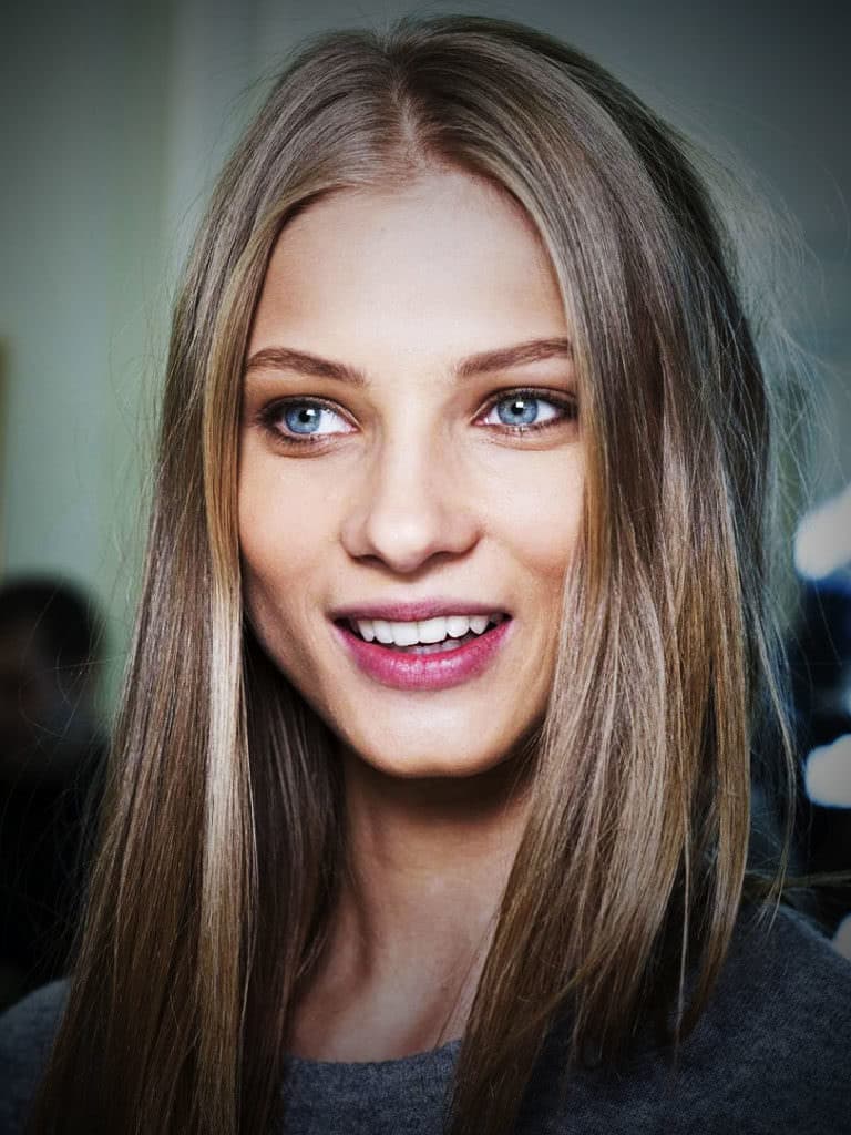 Ash-blond shade is often suitable for girls with olive skin. This tone helps to further reveal the depth of green and blue eyes, as well as give the image a restrained elegance.