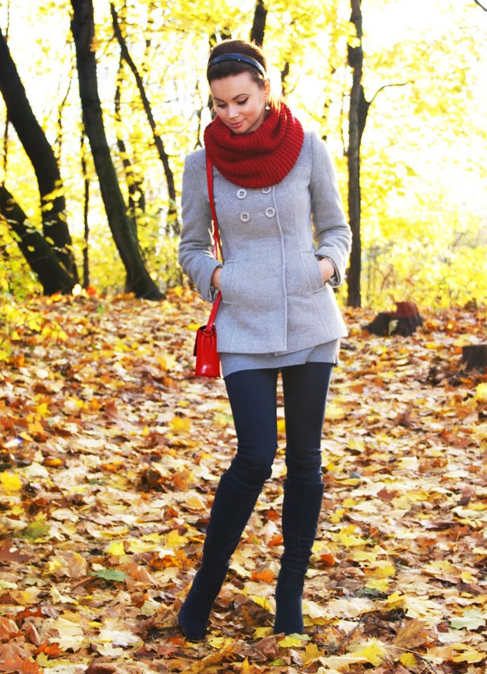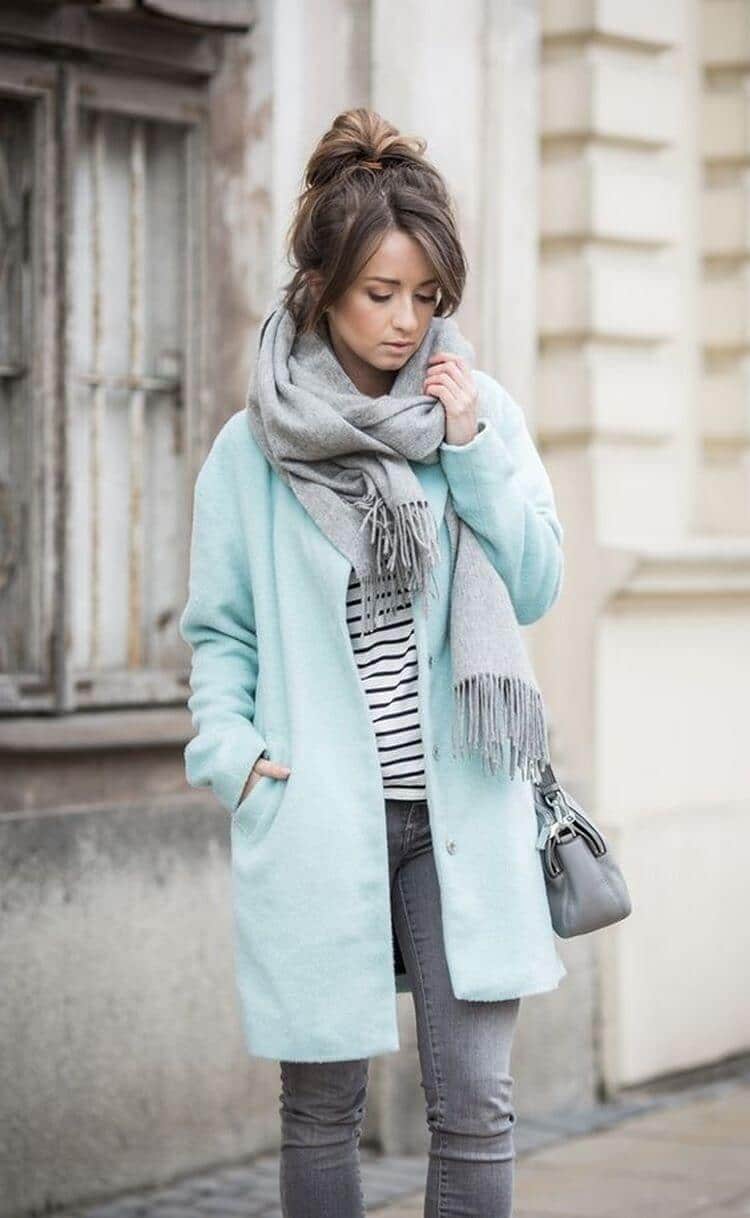 Also, picking up such a bright scarf with gray and other calm shades, it will give a bright mood to your image.