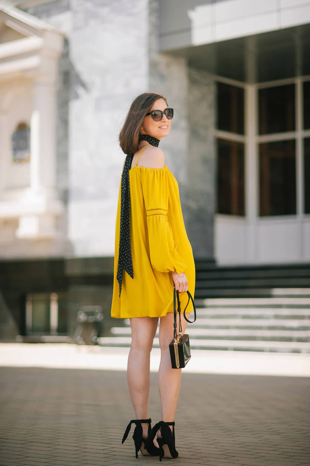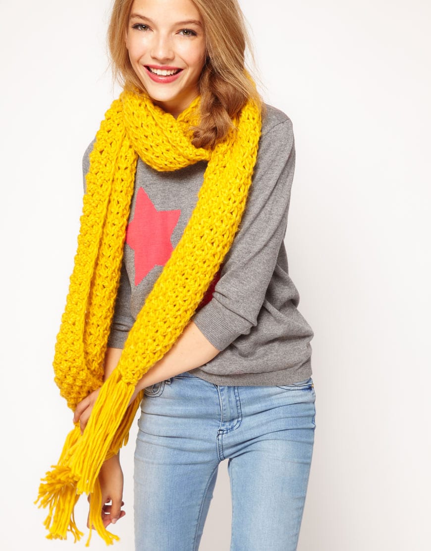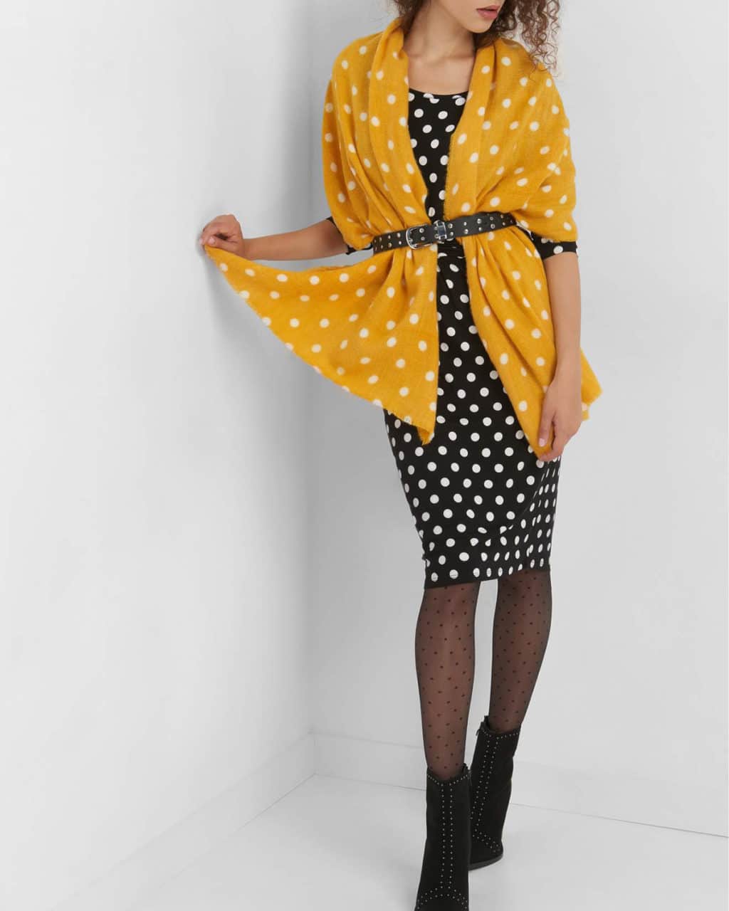 One of the extraordinary and cheerful shades is yellow; such a scarf will effectively bring bright colors and a playful mood into any image. After all, sometimes you really want to bring colors to your gray everyday life.