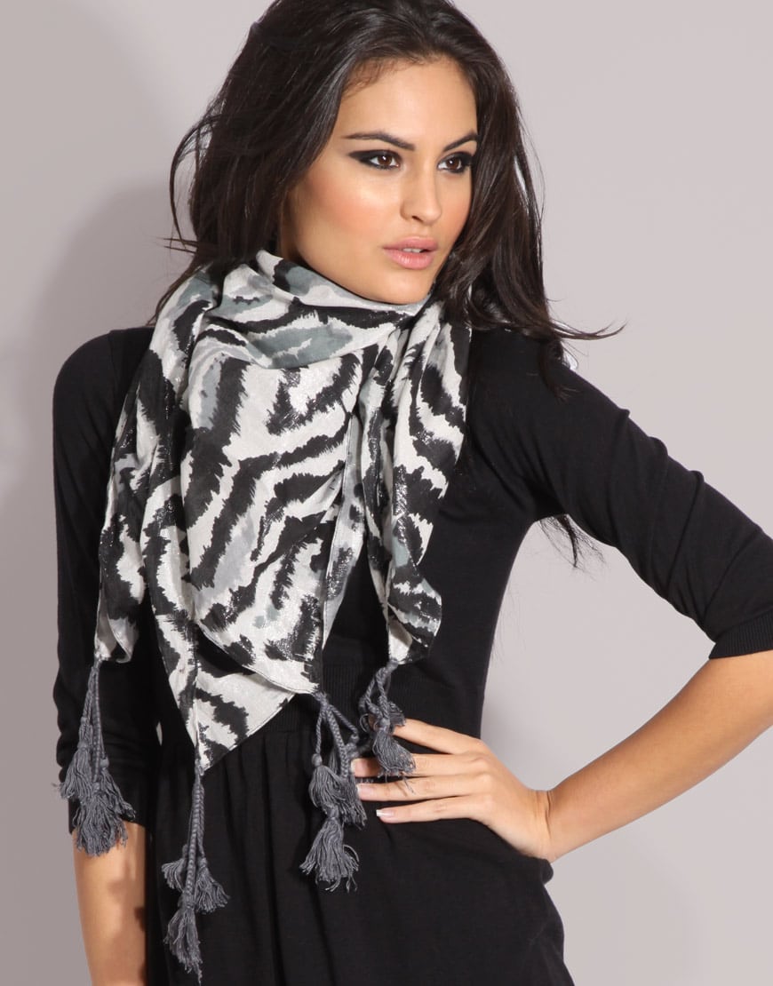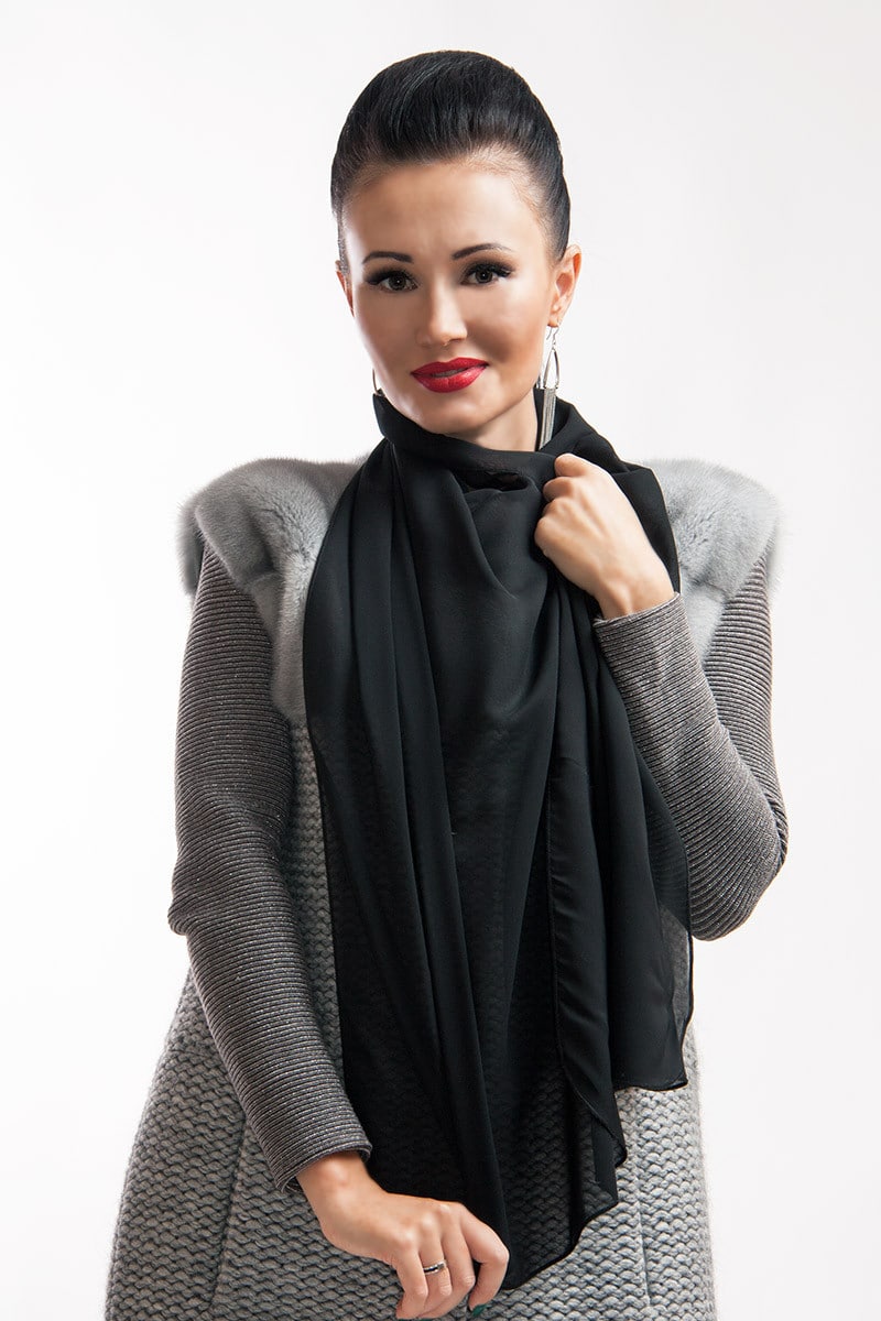 A classic black scarf, this is such a shade that fits perfectly into any style of your image, it is important to choose the right model.