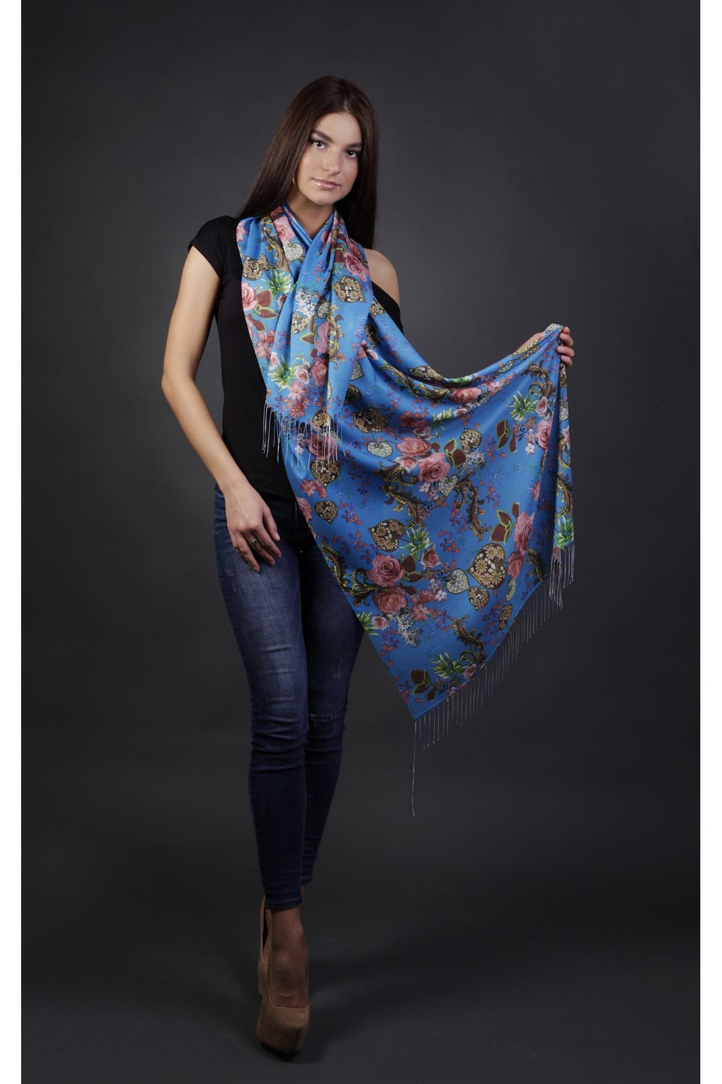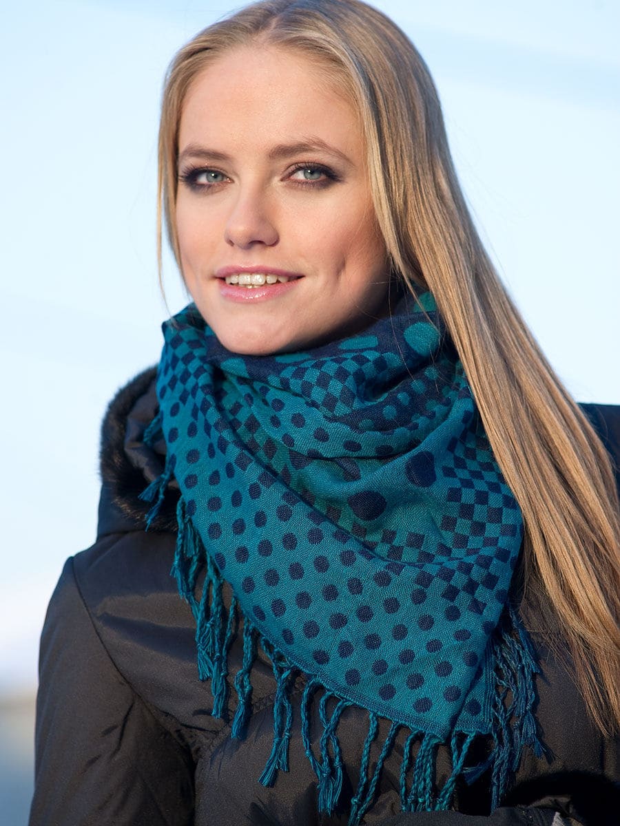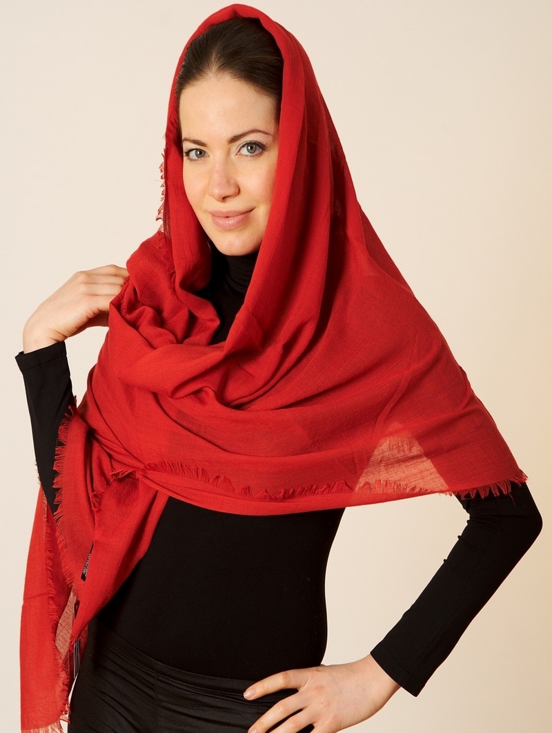 The shawl perfectly acts as a scarf, so tied around the neck, and dressed on shoulders.