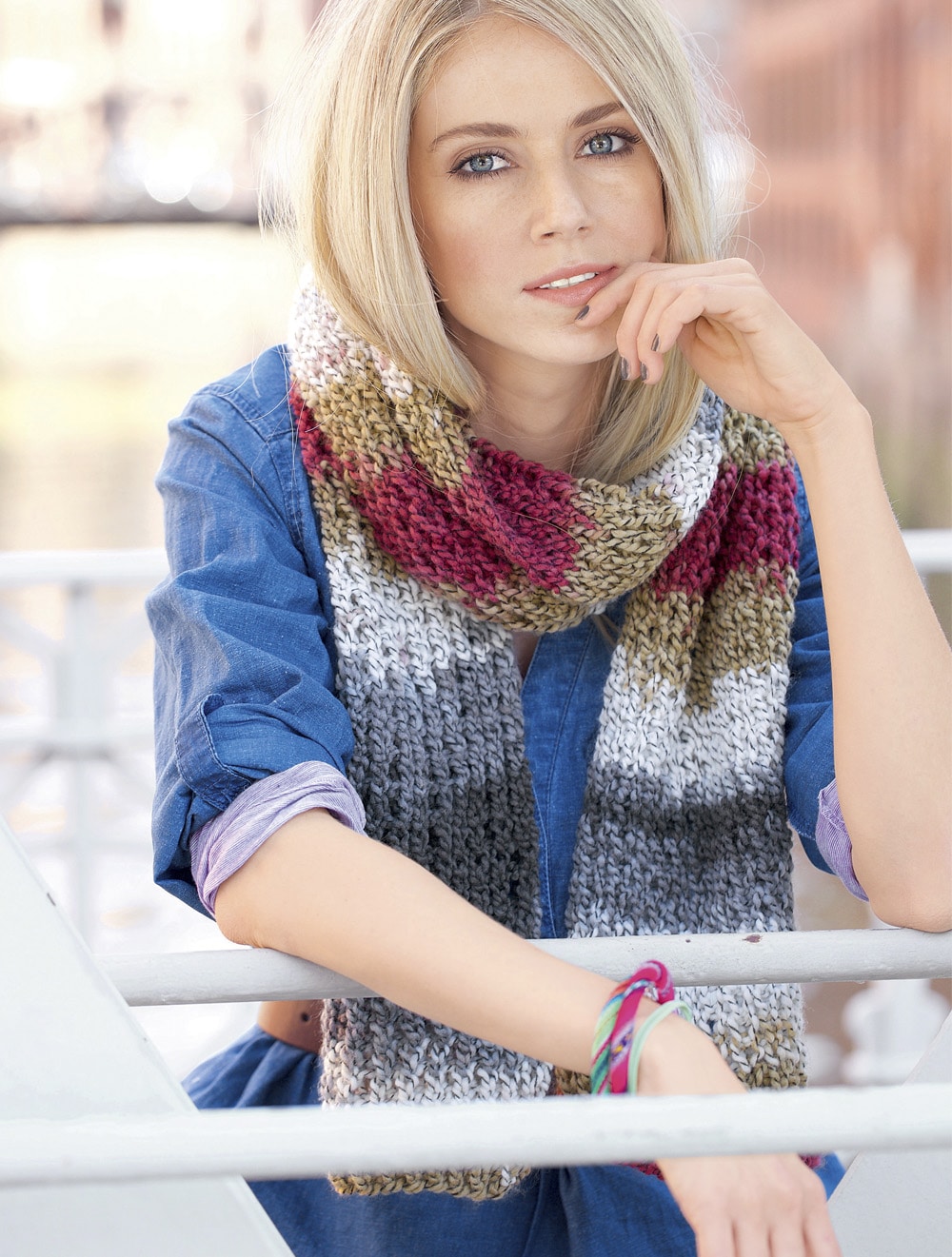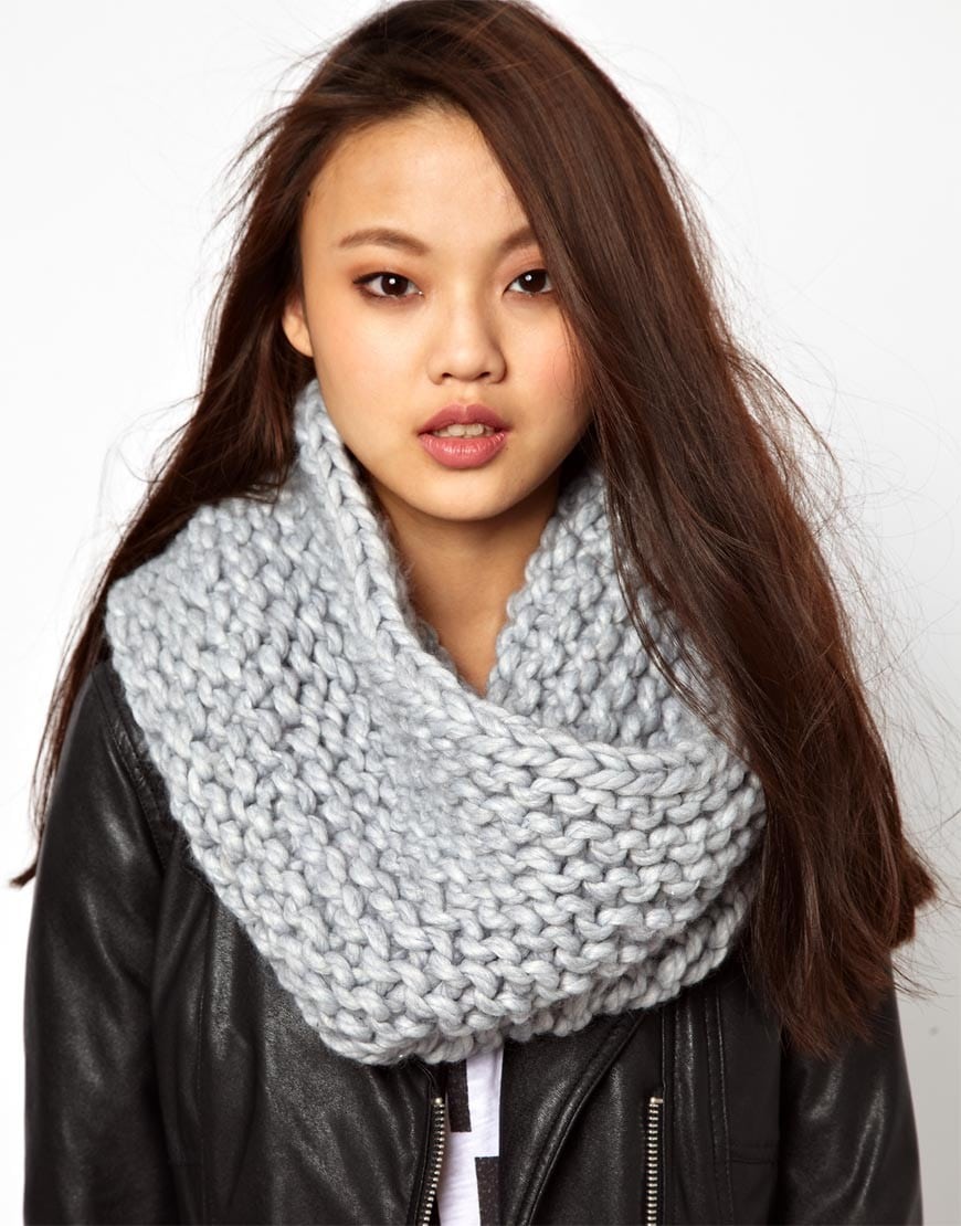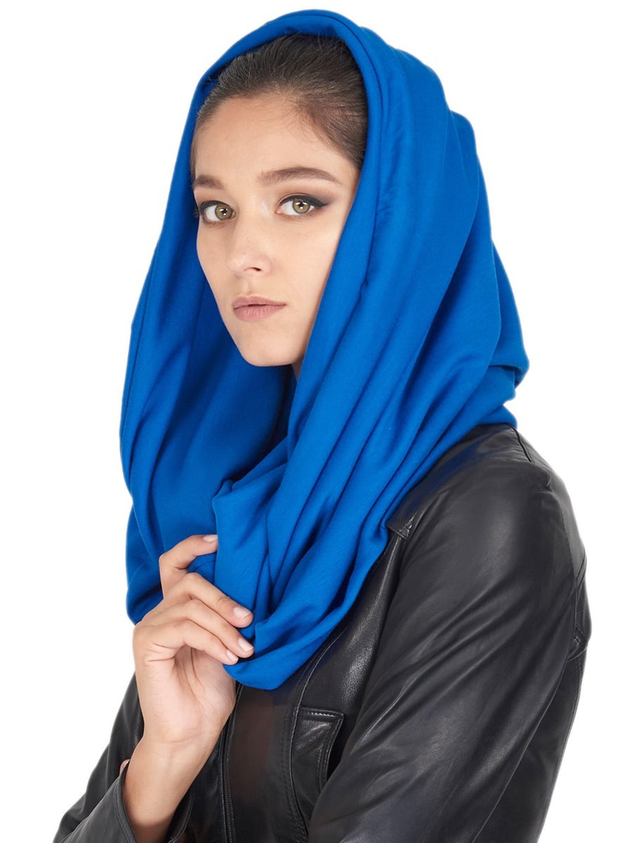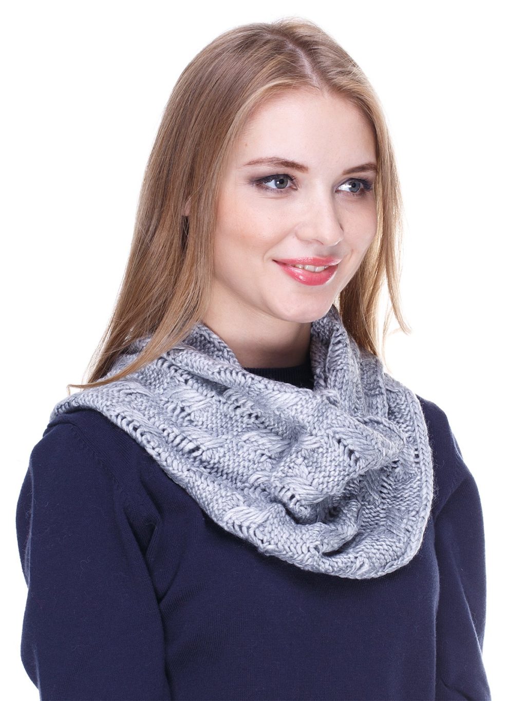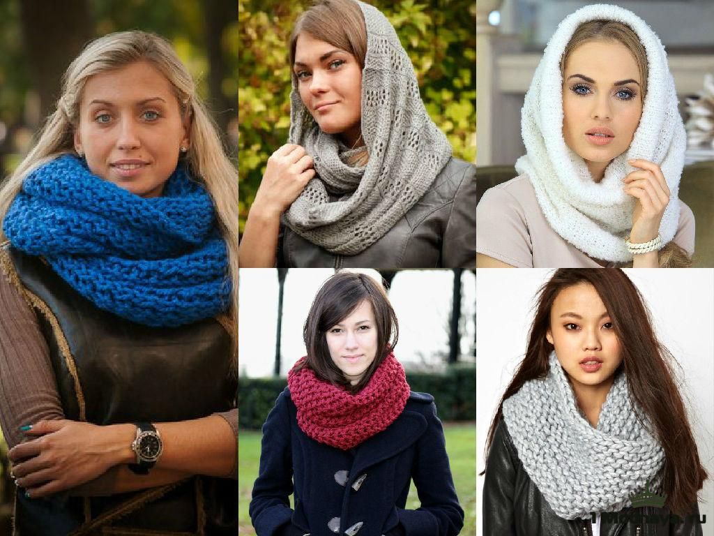 A fashionable Snood scarf, its privileges are that you do not need to think about how to tie it in the original way, and it perfectly fulfills the role of a headdress and a scarf at the same time. It is enough to wrap it several times around the neck or throw it on the head.