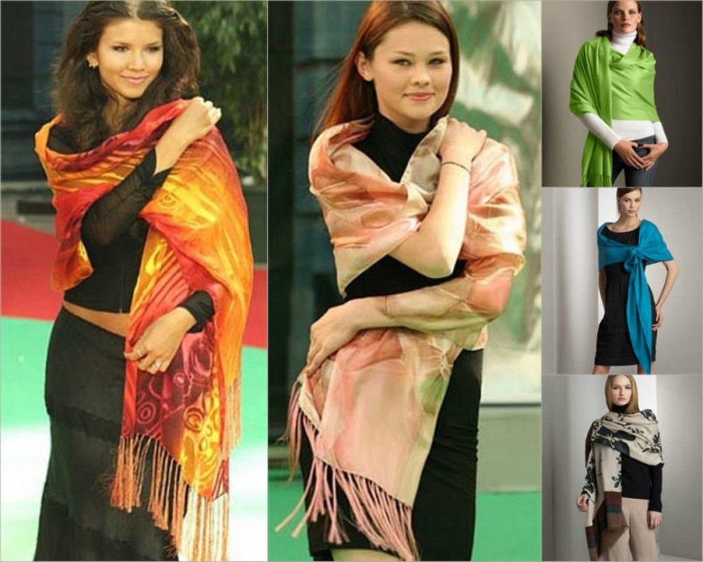 She is present in the wardrobe of every girl. Naturally, this is not one or two, because there are many variations of this model, from light lace to warm volume scarves.