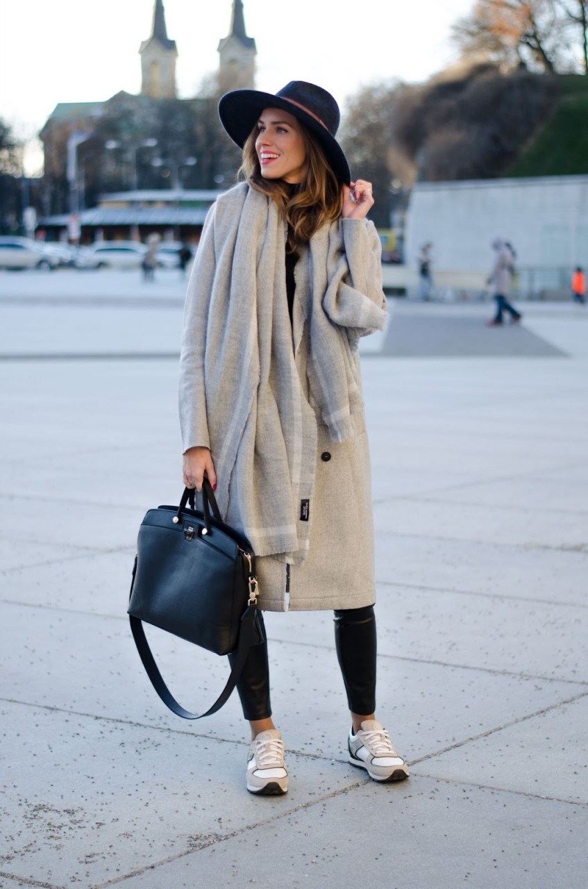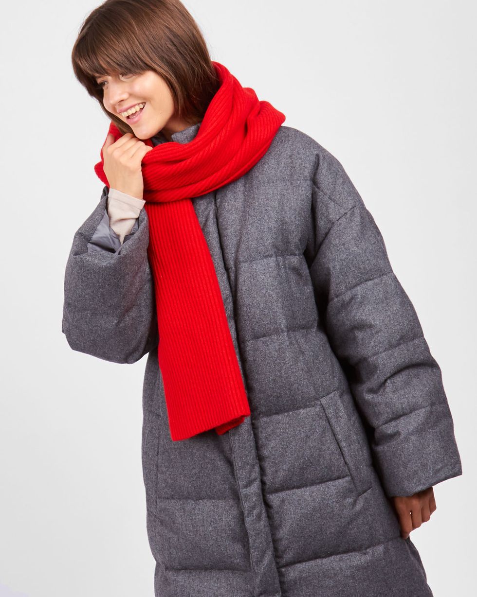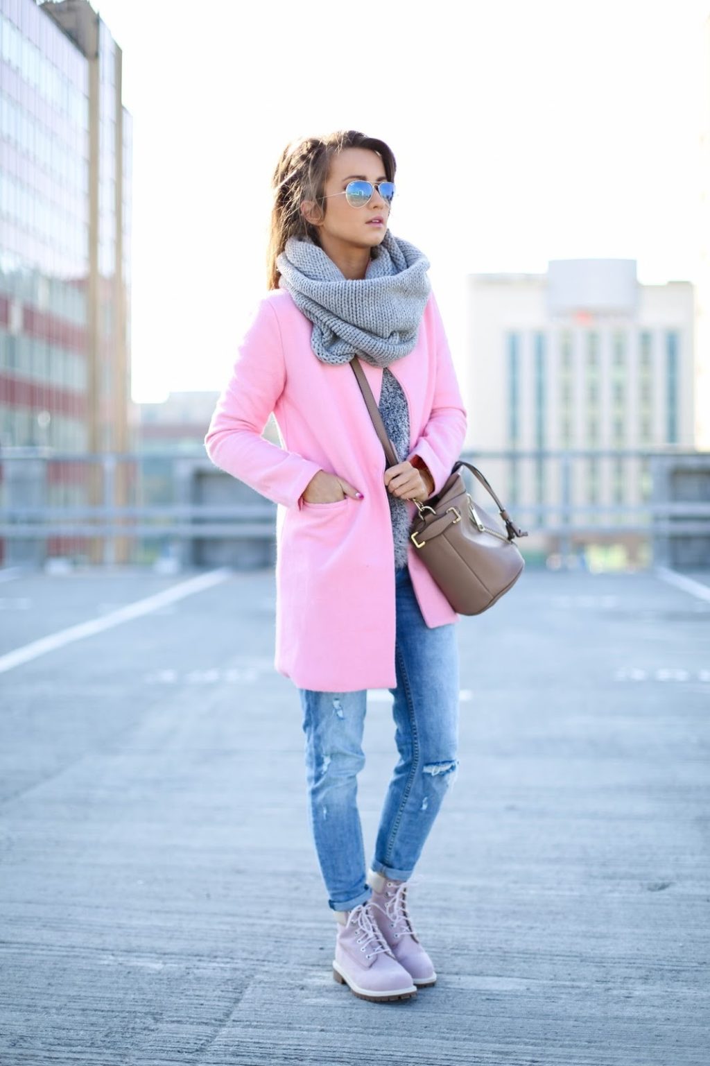 It will look harmonious, choosing in addition to the image with bright shades of the coat, a scarf of gray tones.
