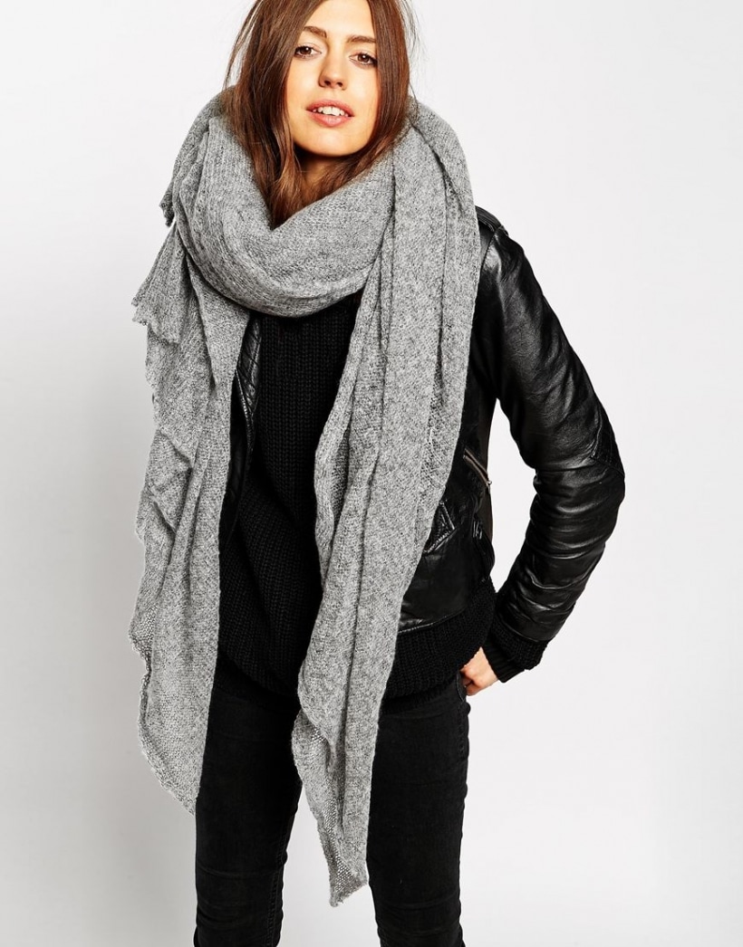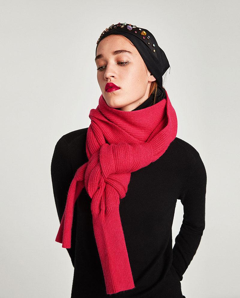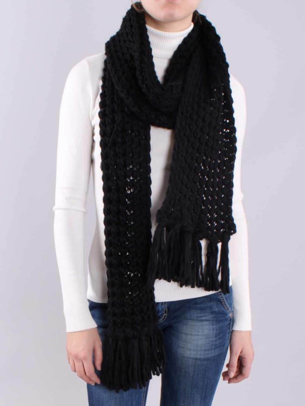 In the cold season, black warm scarf models will be an appropriate complement to your outfit. For example, having tied them on a coat, or dressed as snood.