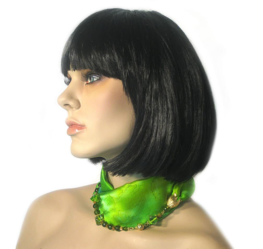 The scarf bracelet looks original and feminine. It will perfectly complement your outfit, it is worth wrapping it around your neck without tightening it so that the brooch hangs in the chest area, and the stylish look is ready.