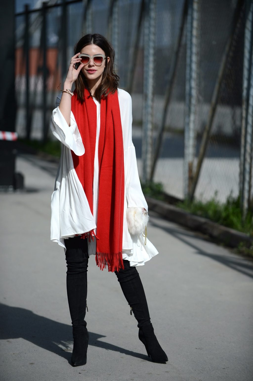 Chiffon light scarves and scarves are perfectly combined with many types of clothes. Here are some examples of how to wear them stylishly and elegantly: